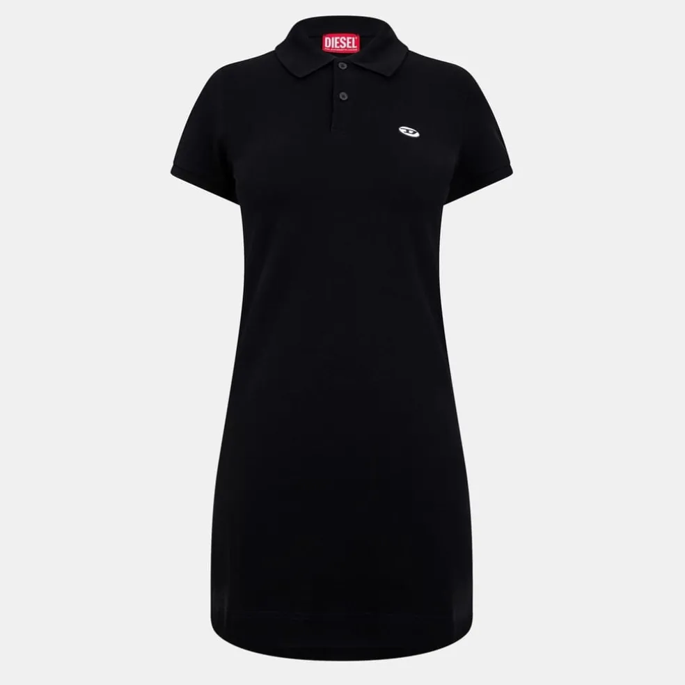 This Diesel mini dress combines a t-shirt style with a polo collar and collared neck, offering a casual yet refined look. The short sleeves and button closure add to its classic appeal. Crafted in a solid pattern with a straight hem, it features a regular fit and a subtle logo embellishment, making it a versatile addition to any wardrobe.