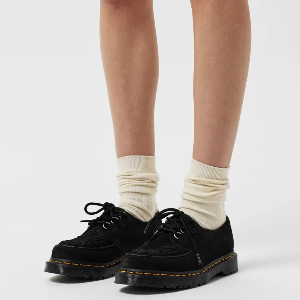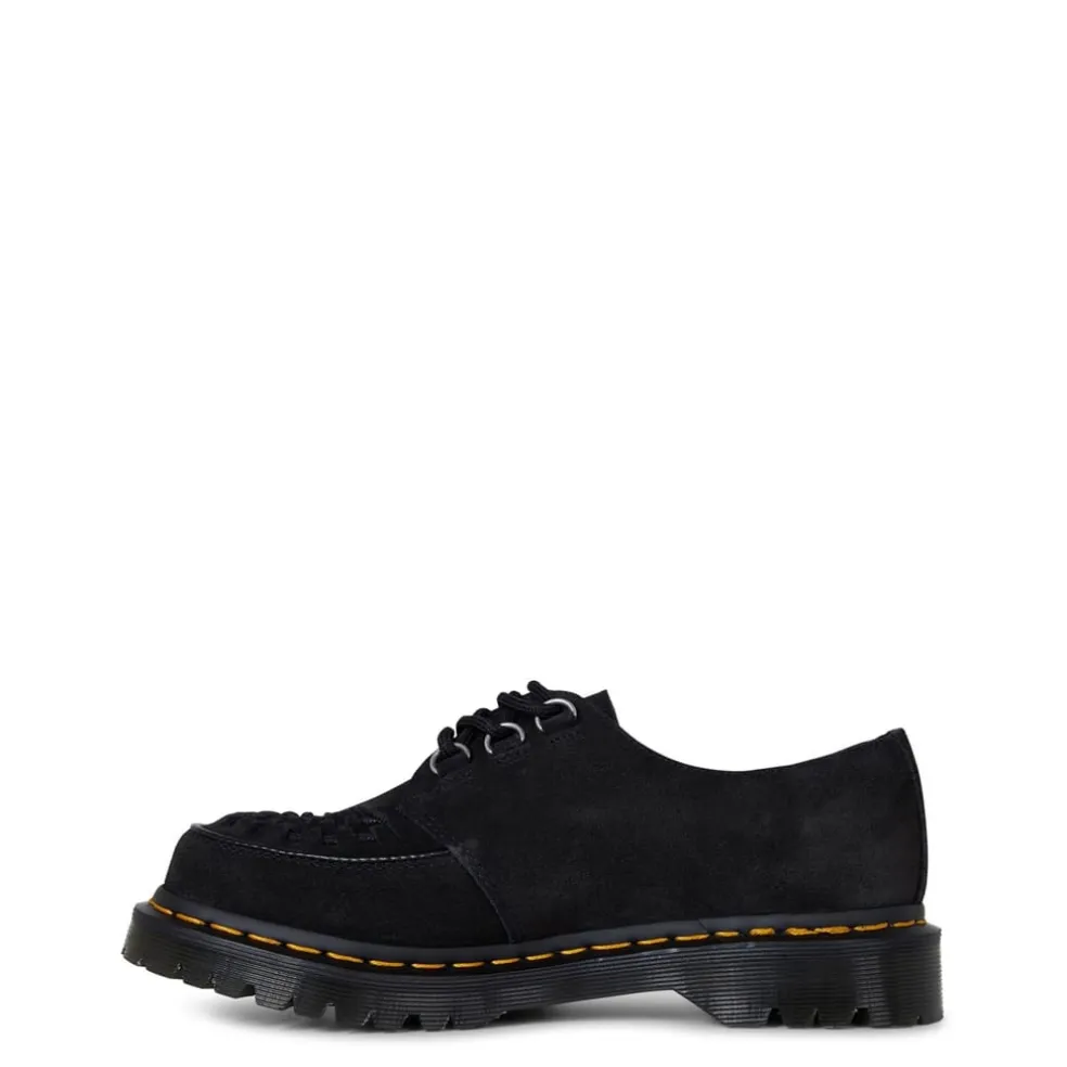 -Dr. Martens signature yellow topstitching and grooved edges on the soles provide instant brand recognition.