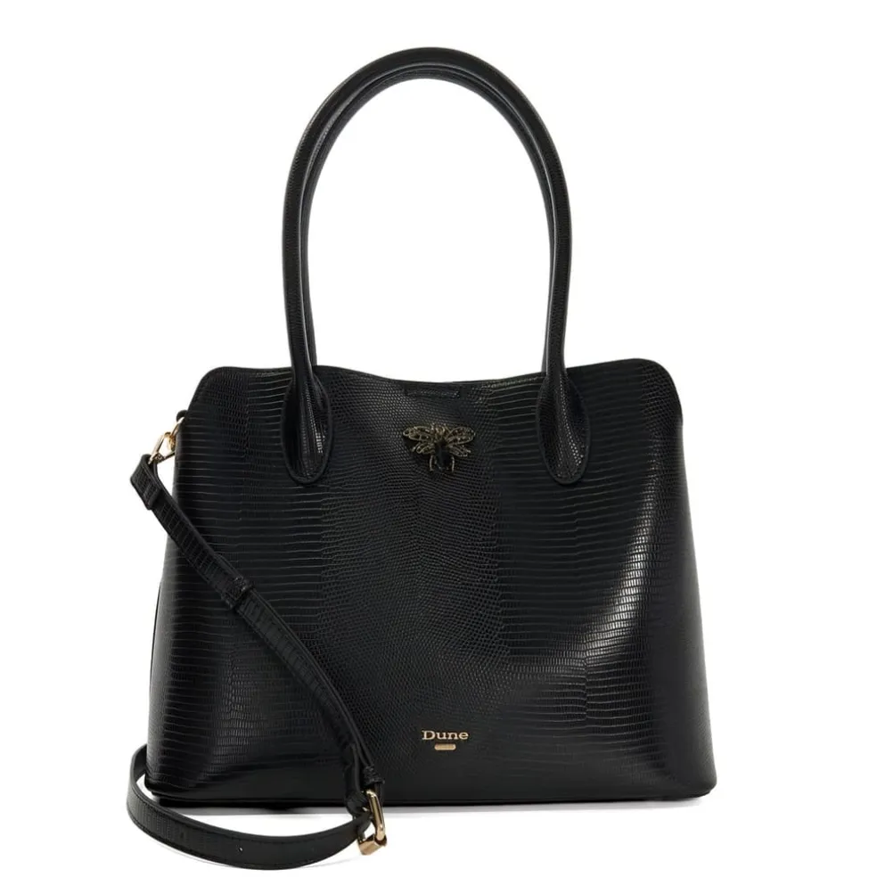 Dune London Snake Skin Textured Tote with Detachable Strap in Black