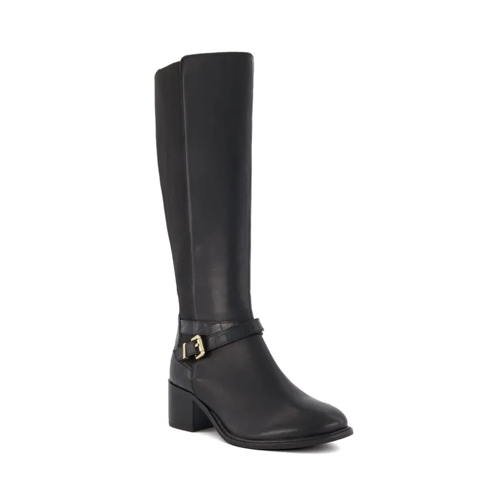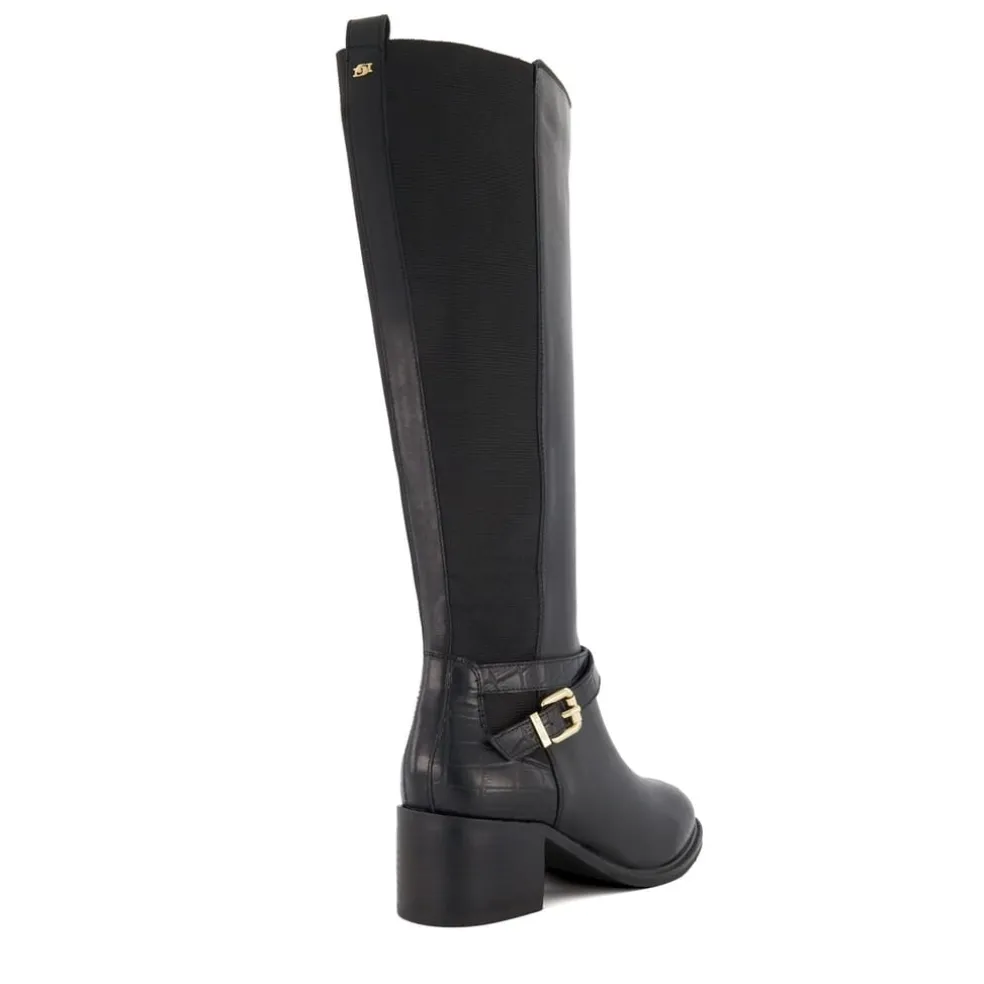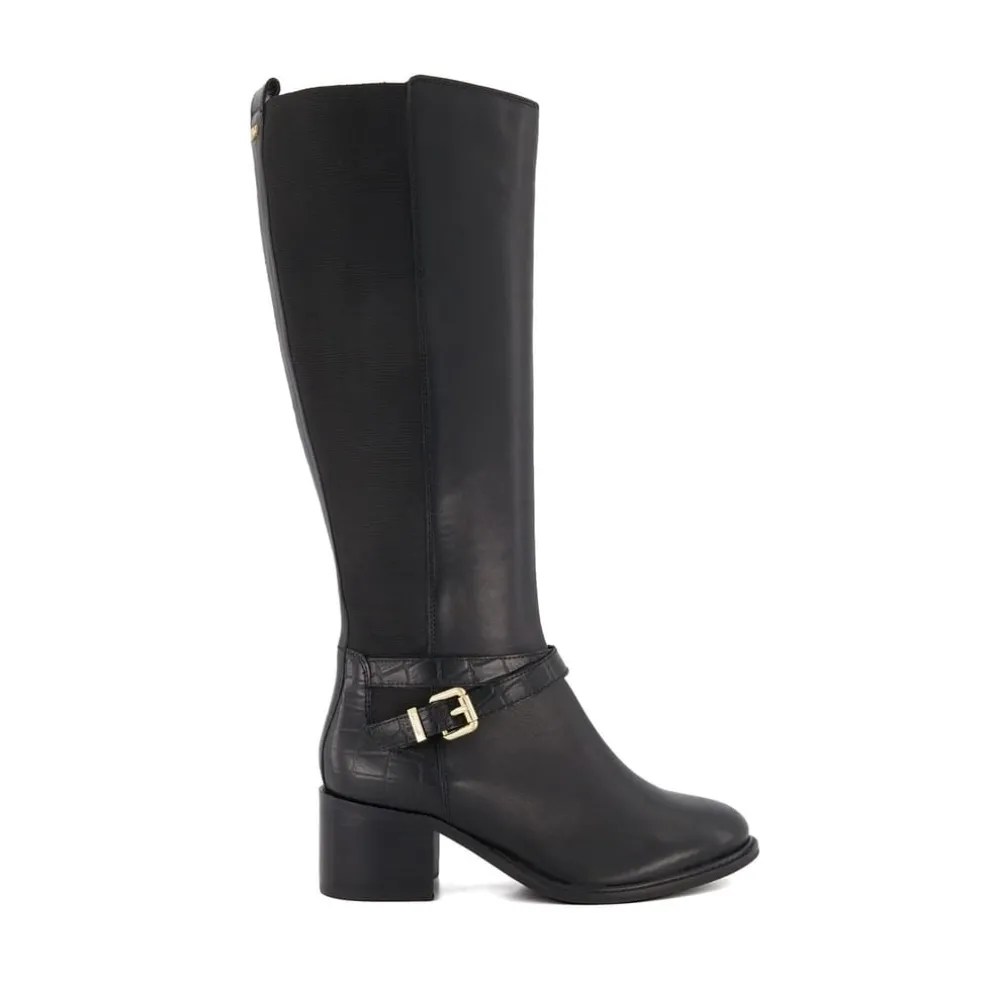 Take your casual styling to the next level with our Tildy long boot. Crafted from the finest material and featuring croc debossed panelling and our bespoke branding at the rear and side-buckle detail these elasticated knee-high boots are an effortless addition to your autumn styling. Set on a block heel for ease of wear and finished with an almond toe this versatile design offers a timeless aesthetic with a contemporary touch.