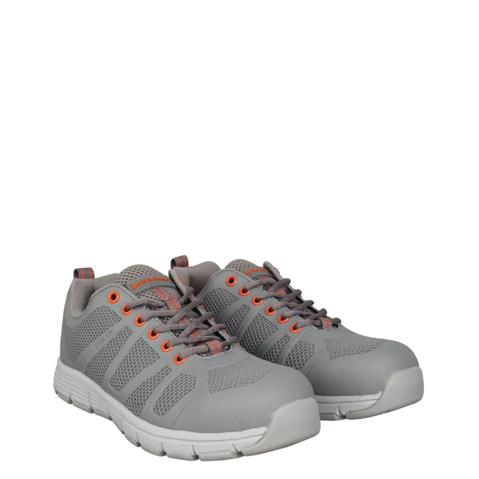 Designed to keep you comfortable on your feet all day, these safety shoes have been crafted in a low profile silhouette made from a breathable mesh. With a protective steel toe cap for added protection. Lightweight EVA midsole that offers a soft cushioning feel. These safety shoes also feature a full Memory Foam footbed that offers all day comfort and support, with a non-slip rubber outsole.