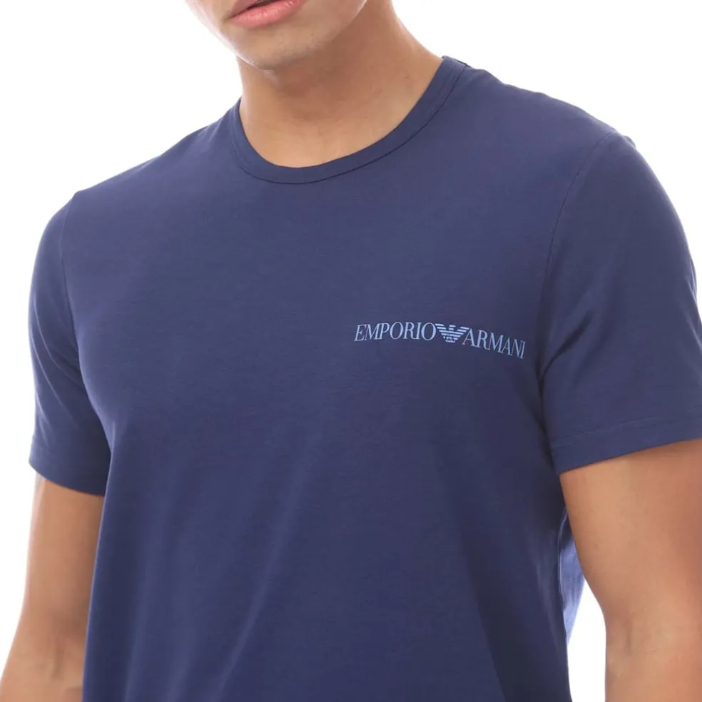Emporio Armani 2 Pack of Lounge Crewneck T-Shirts in Blue-White