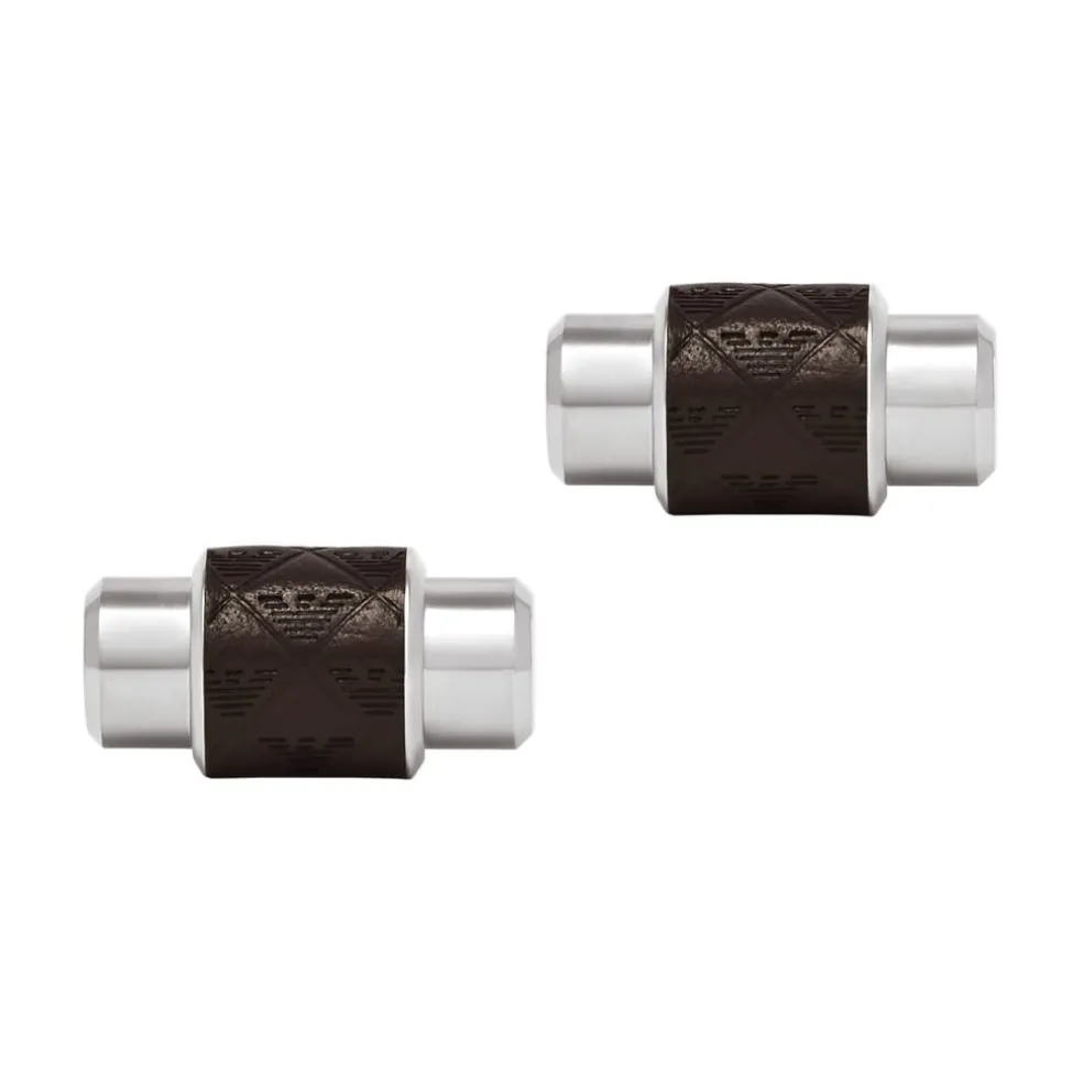 – EGS3137040 – Emporio Armani’s cufflinks feature stainless steel with eagle pattern on brown leather.