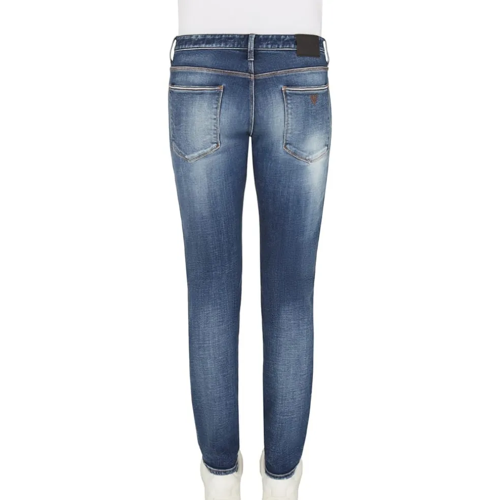 A must have staple for every man’s wardrobe, the J06 Jeans from Emporio Armani are defined by clean lines which can be worn in any season. Constructed in a premium blend of cotton and elastane, this pair come in a slim fitted design in a comfort stretch denim. The pair sit just below the waist and feature a discrete zip fly fastening concealed by a button fly. Additional belt loops enable accessories to be worn and offer more versatility of wear options. The look is finished with five pockets , two slip at the side with a smaller inner and two at the rear. The iconic eagle metal badge is adorned to the back pocket and leather Emporio Armani patch at the back signs off the pair with a premium and deluxe finish. Styles may vary. Material Composition: 98% Cotton, 2% Elastane. Machine washable at 30 degrees – always refer to and follow washing instructions.