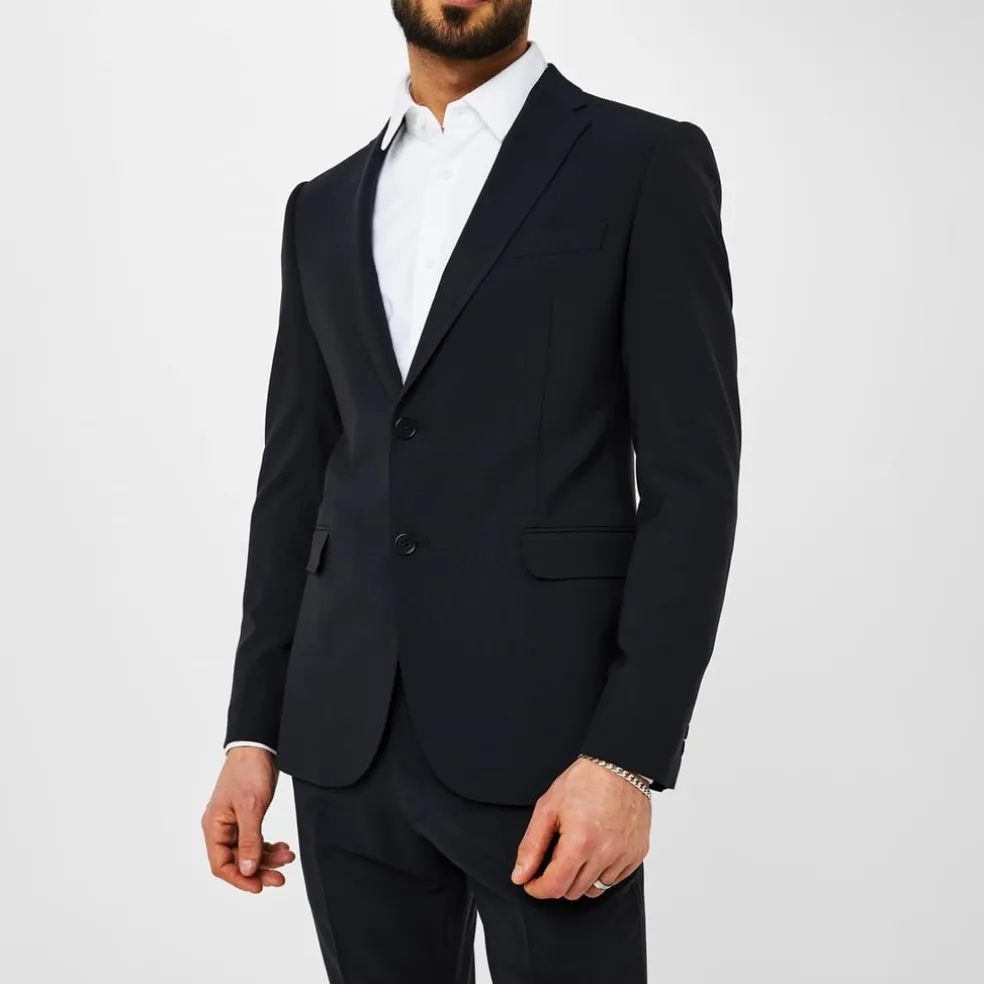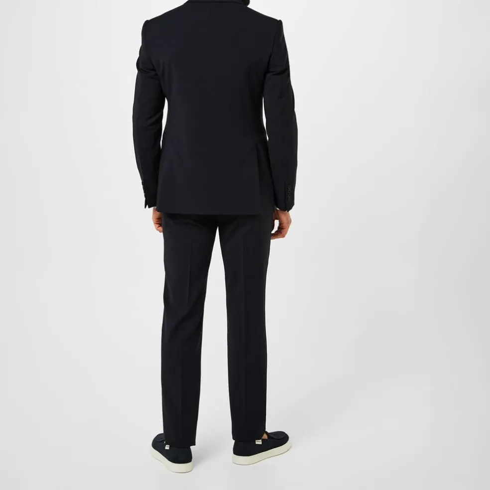 Emporio Armani introduces the Single Breasted Suit: a timeless and sophisticated ensemble. Meticulously constructed from lightweight virgin wool and cut for a flattering slim fit, this men’s suit features a jacket with matching trousers. The blazer features notch lapels framed by full-length sleeves for a refined touch. Single-breasted buttons on the front provide a secure fit. Two flap pockets on the sides and a welt pocket on the chest offer space for essentials. Two back vents ensure unrestricted movement, while the lining of the interior adds a luxurious finish.