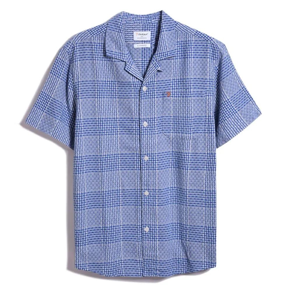 Short sleeves.Full button fastening.Open chest pocket.Embroidered Farah logo.An all over woven check striped design.Relaxed fit.