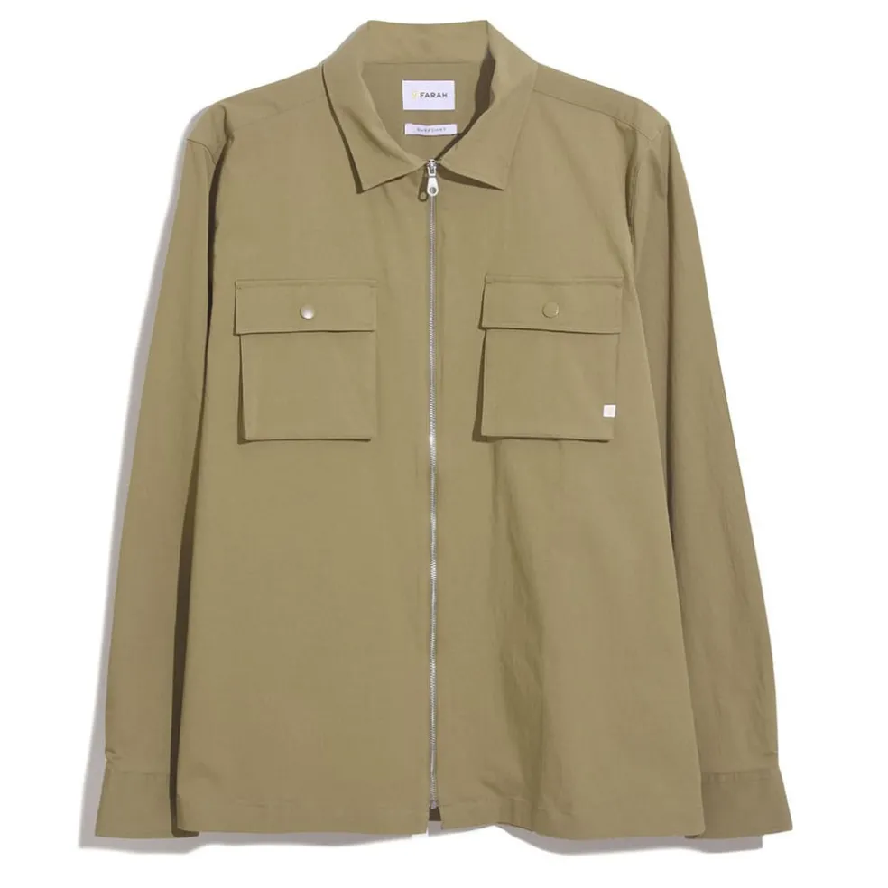 Farah Lynden Full-Zip Overshirt in Khaki