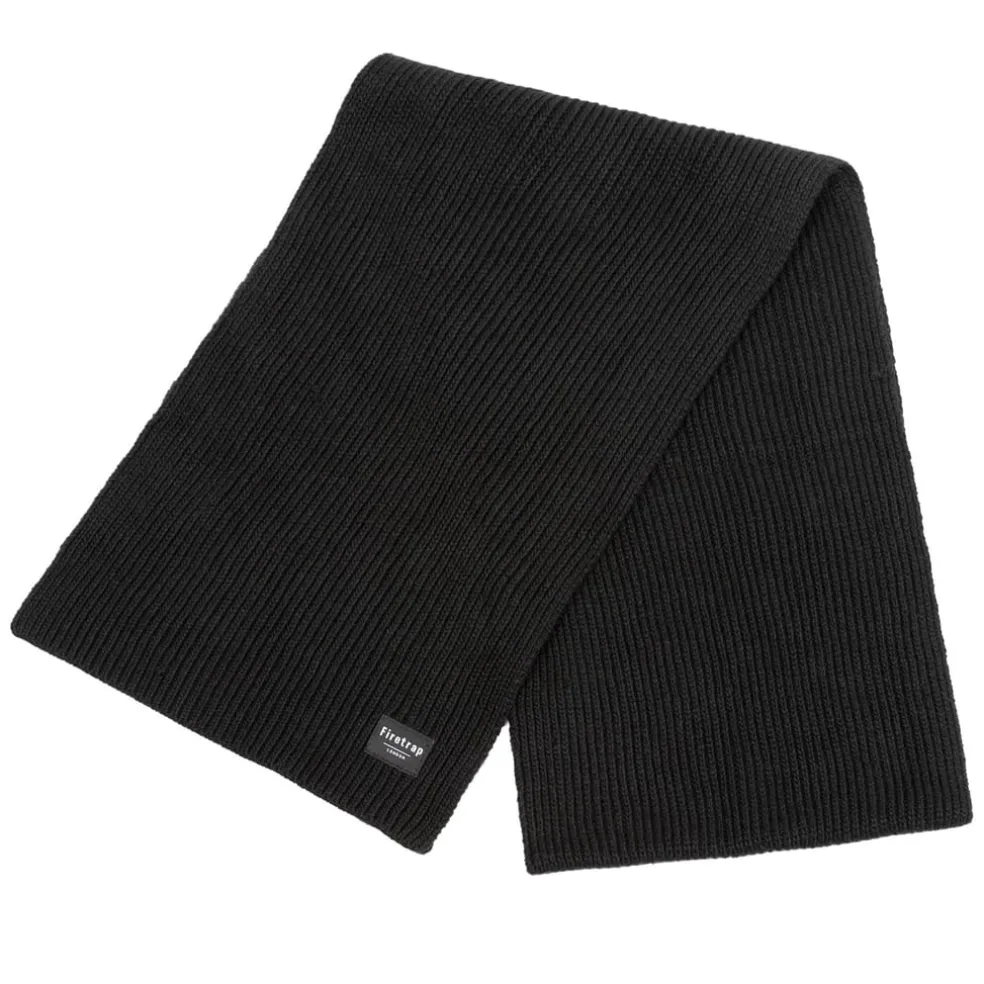 Adult’s rib knitted scarf, classic black design with Firetrap logo. Keep warm for neck all the time.