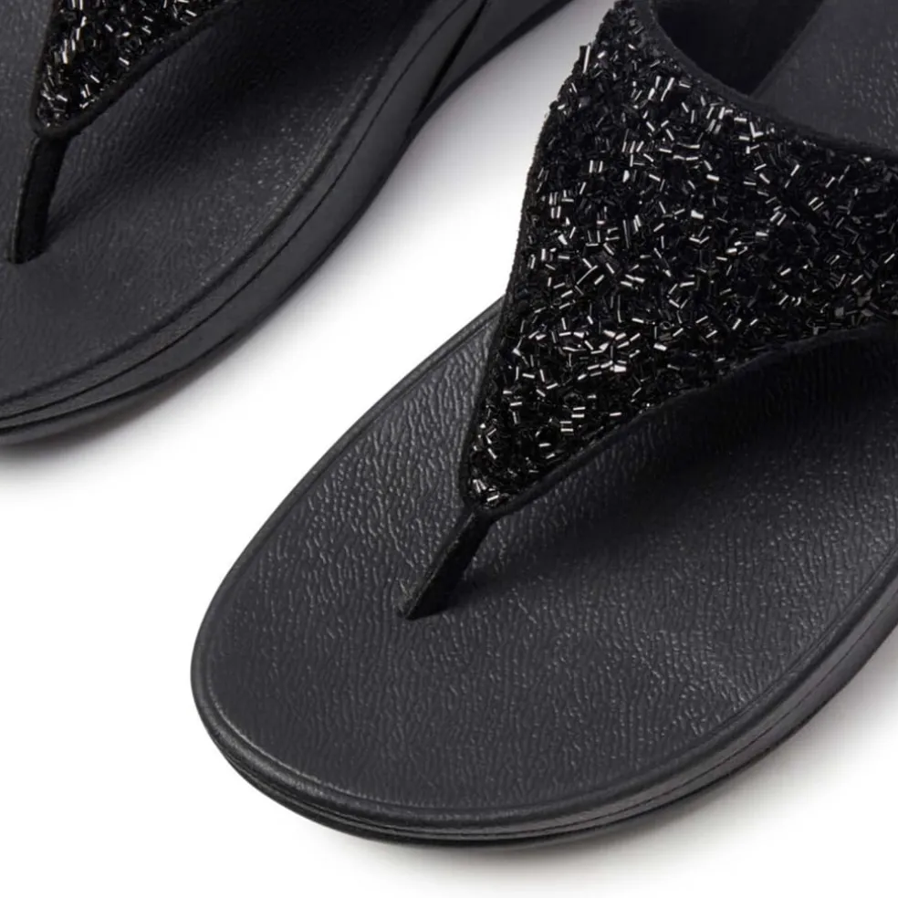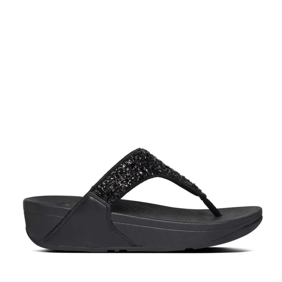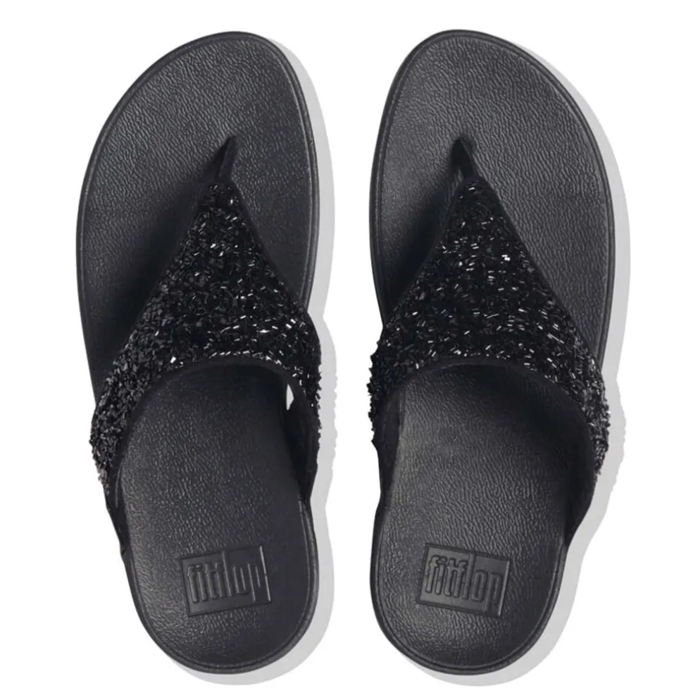 Fit Flop Lulu Shimmerfoil Toe-Thong Sandals in Black