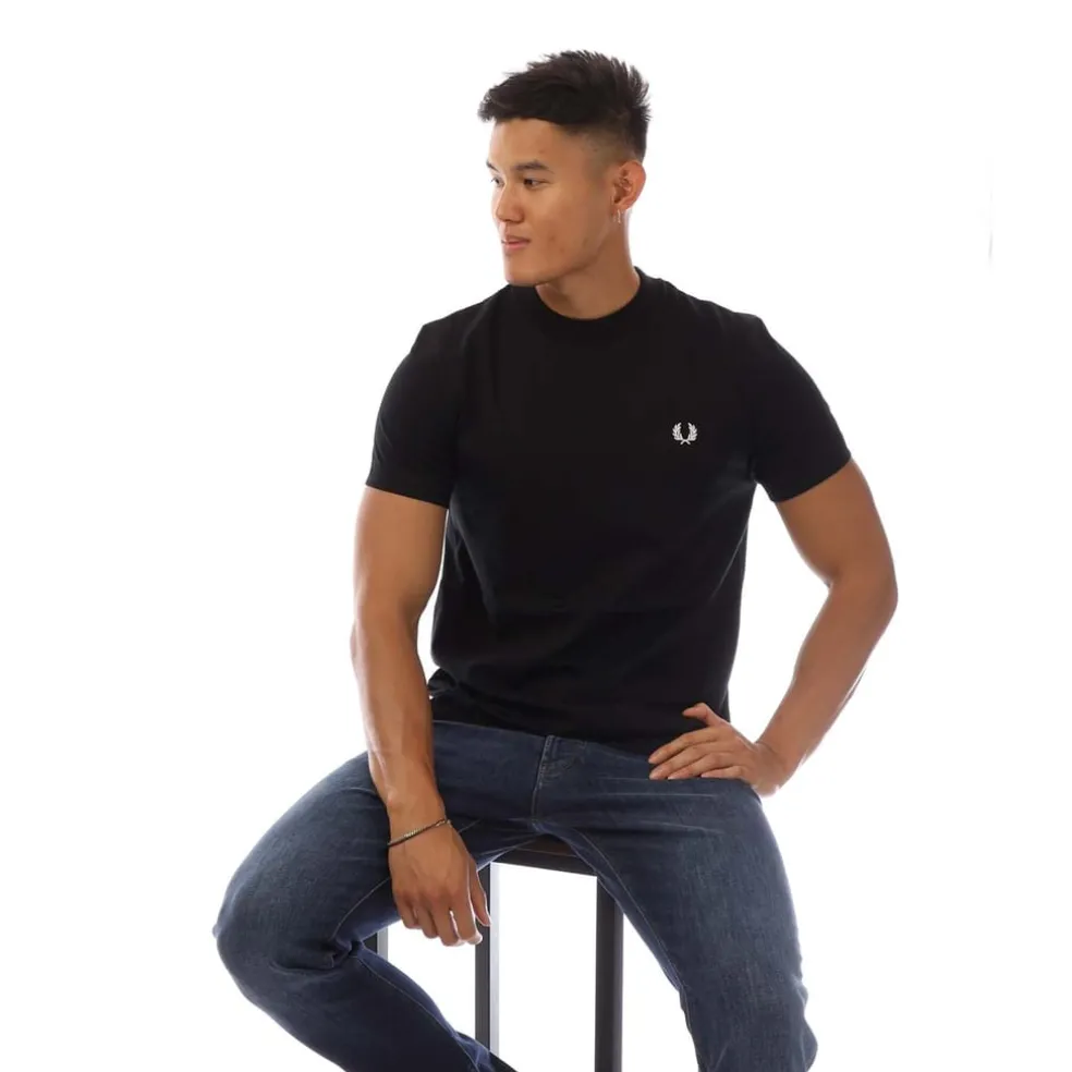 Fred Perry Abstract Soundwave Graphic T-Shirt in Black
