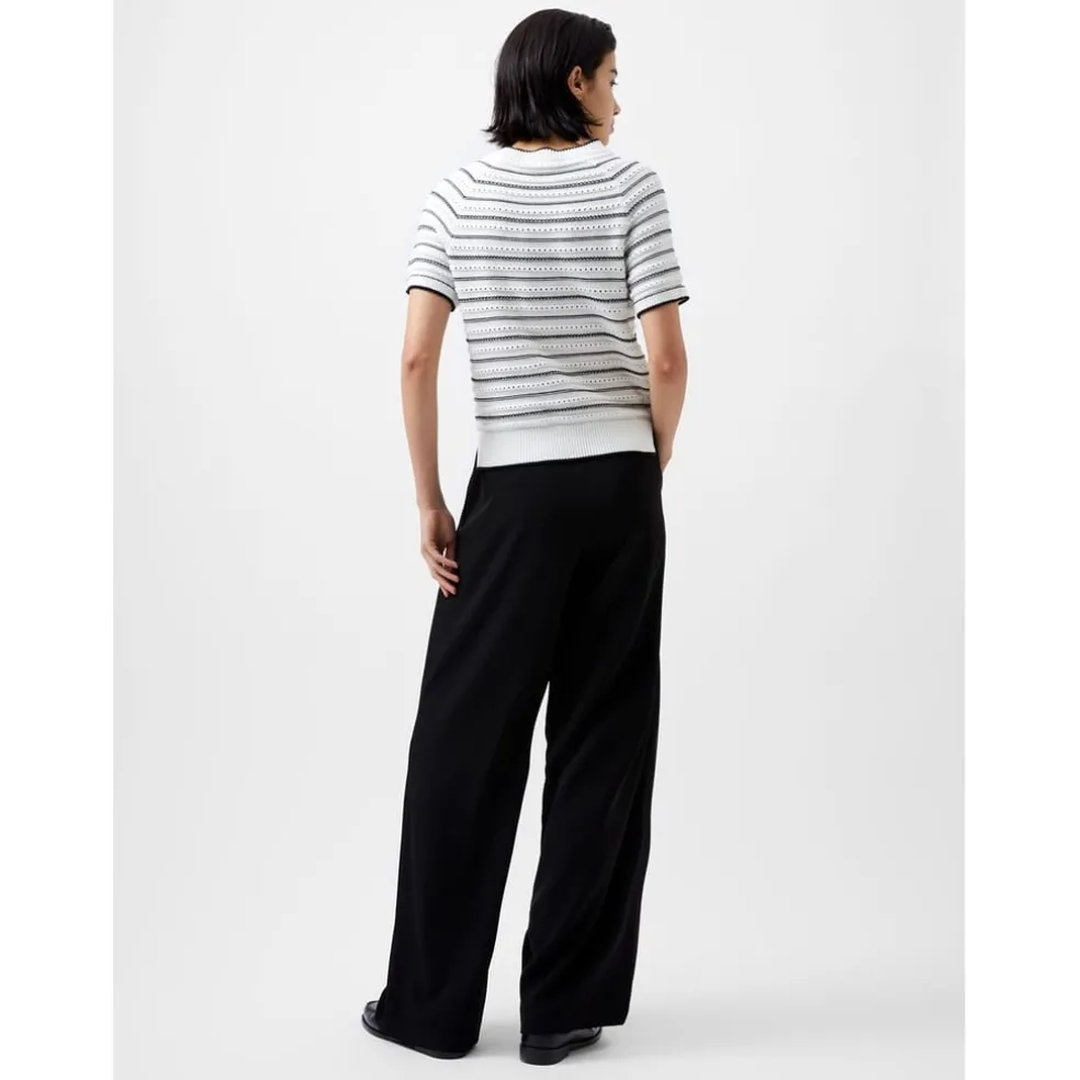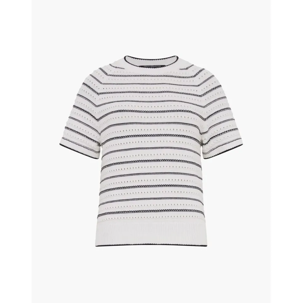 Discover the French Connection sweater, a striped vest with a classic crew neck. This regular fit top features short sleeves and a ribbed collar, adding a touch of texture. Perfect for a smart-casual look, this piece blends comfort and style seamlessly.
