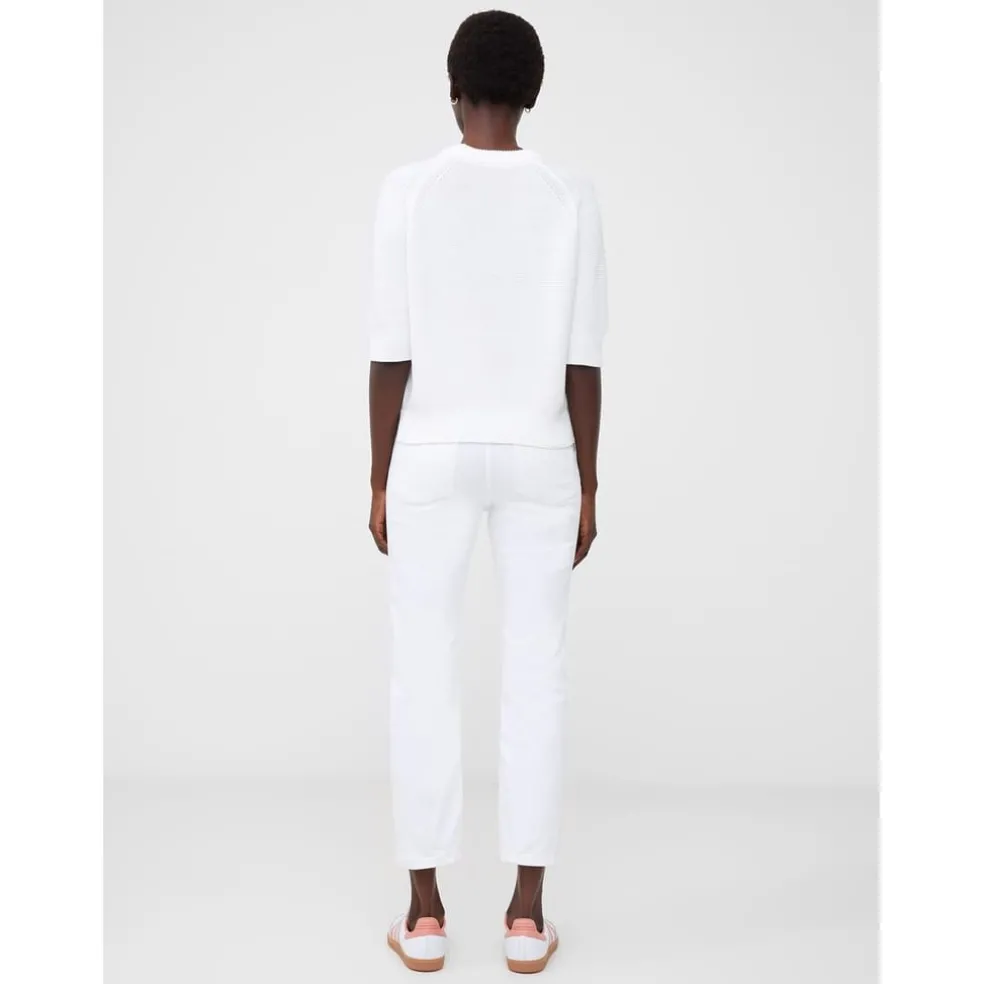 Discover the French Connection top, featuring a relaxed fit and a classic crew neck. This knit design is enhanced with raglan short sleeves and a ribbed pattern, offering a stylish yet comfortable look. The ribbed cuffs add a touch of detail, making it a versatile addition to your wardrobe.
