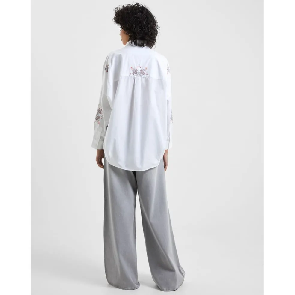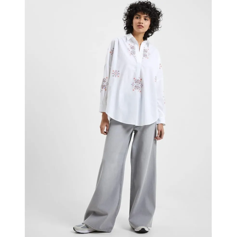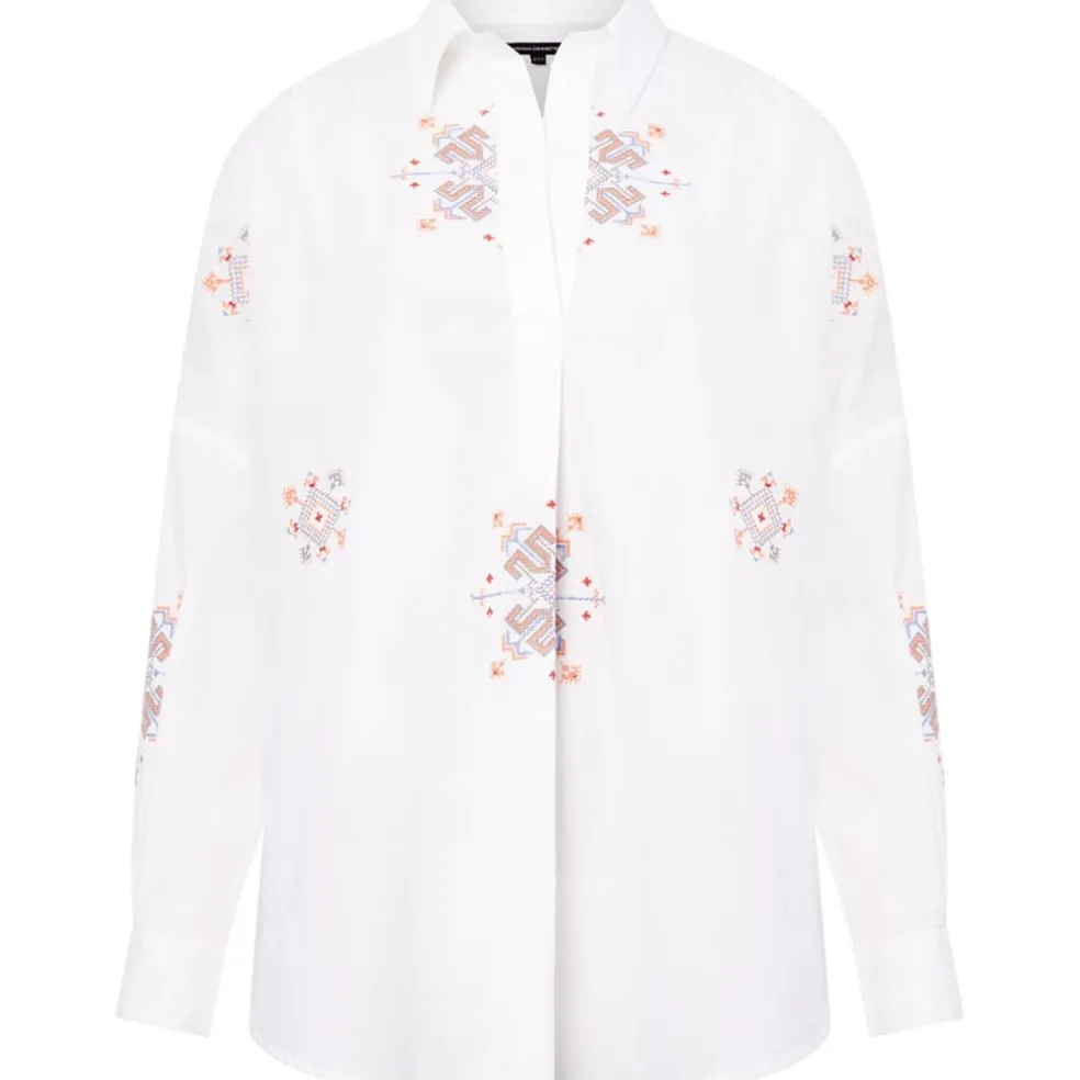 French Connection Embroid Notched Neck Relaxed Fit Shirt in White