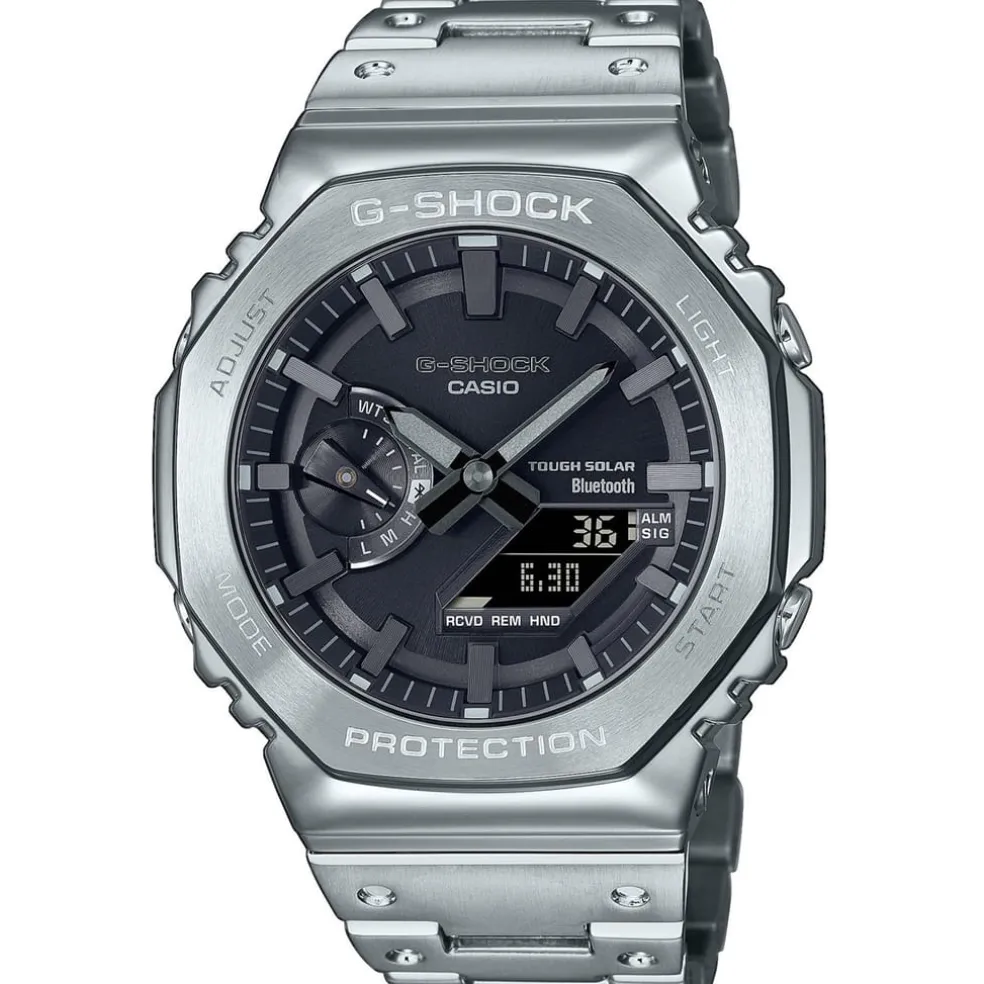 – High-density mounting keeps the analogue-digital combination module slim, while still providing the advanced functions you love in a compact profile and comfortable fit. The GM-B2100D-1AER pairs with a smartphone via Bluetooth®. Simply tap into the dedicated app for precision timekeeping that keeps you on track. With Tough Solar, a high-brightness LED light and a range of other convenient functions, this is a timepiece that delivers on style and practical utility.