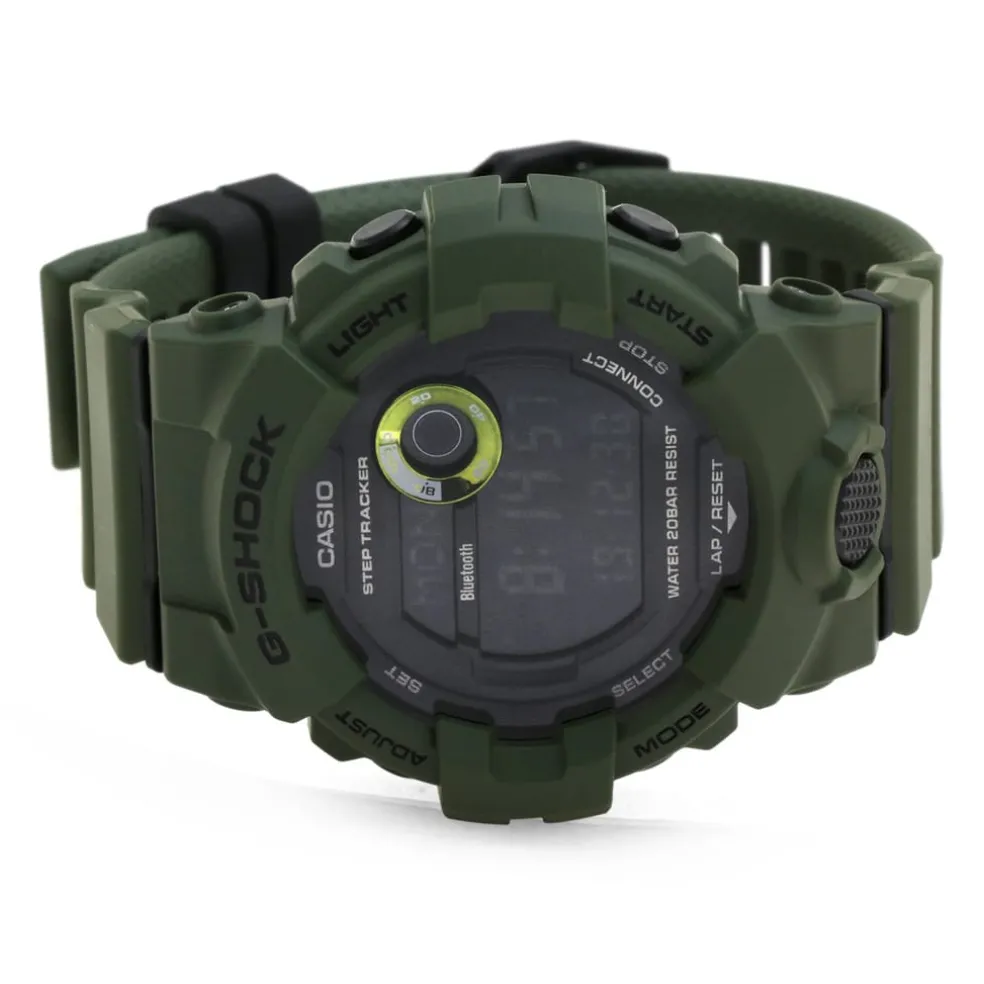 GBD-800 range allow you to link your watch with the G-SHOCK Bluetooth® Connected phone app to provide access to a number of functions that enhance workouts. Daily health and fitness support functions include a 3-axis accelerometer that keeps track of step counts, Auto LED light, Dual Time, Lap memory 200, Stopwatch, and 200M Water resistance also provides essential support to the shock resistant timepiece.