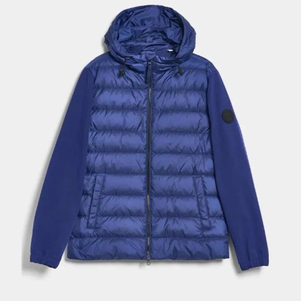 Treated with a water-repellent finish, this GANT jacket is ideal for your active outdoor adventures. Made from recycled polyester for a soft, quilted shell, this jacket is filled with 90% down and 10% feathers for a lightweight yet insulating warmth. Sitting at the hip in a regular fit, it has a protective hood with drawstring adjusters, side welt pockets, two interior pockets and a rubber GANT logo patch at the sleeve.
