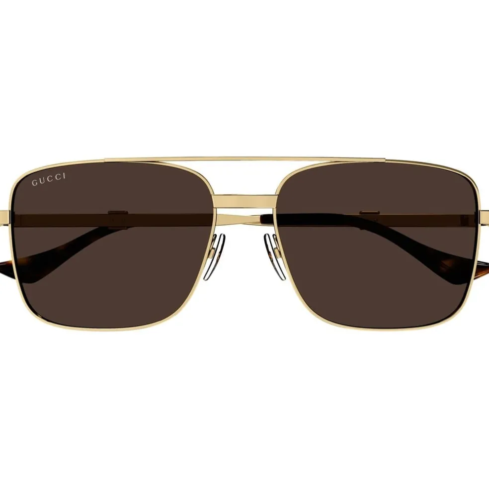 Introducing the GG1441S Web Pattern Sunglasses from the incomparable Gucci. Embodying the house’s signature style and unparalleled craftsmanship, this pair have been fashioned in gold-toned metal square frames that exude sophistication. The aviator-style nose bridge- and accompanying nose pads- ensure a comfortable fit while adding a hint of retro charm. The brown lenses with a light mirror add a touch of mystery and provide excellent protection from harmful UV rays.