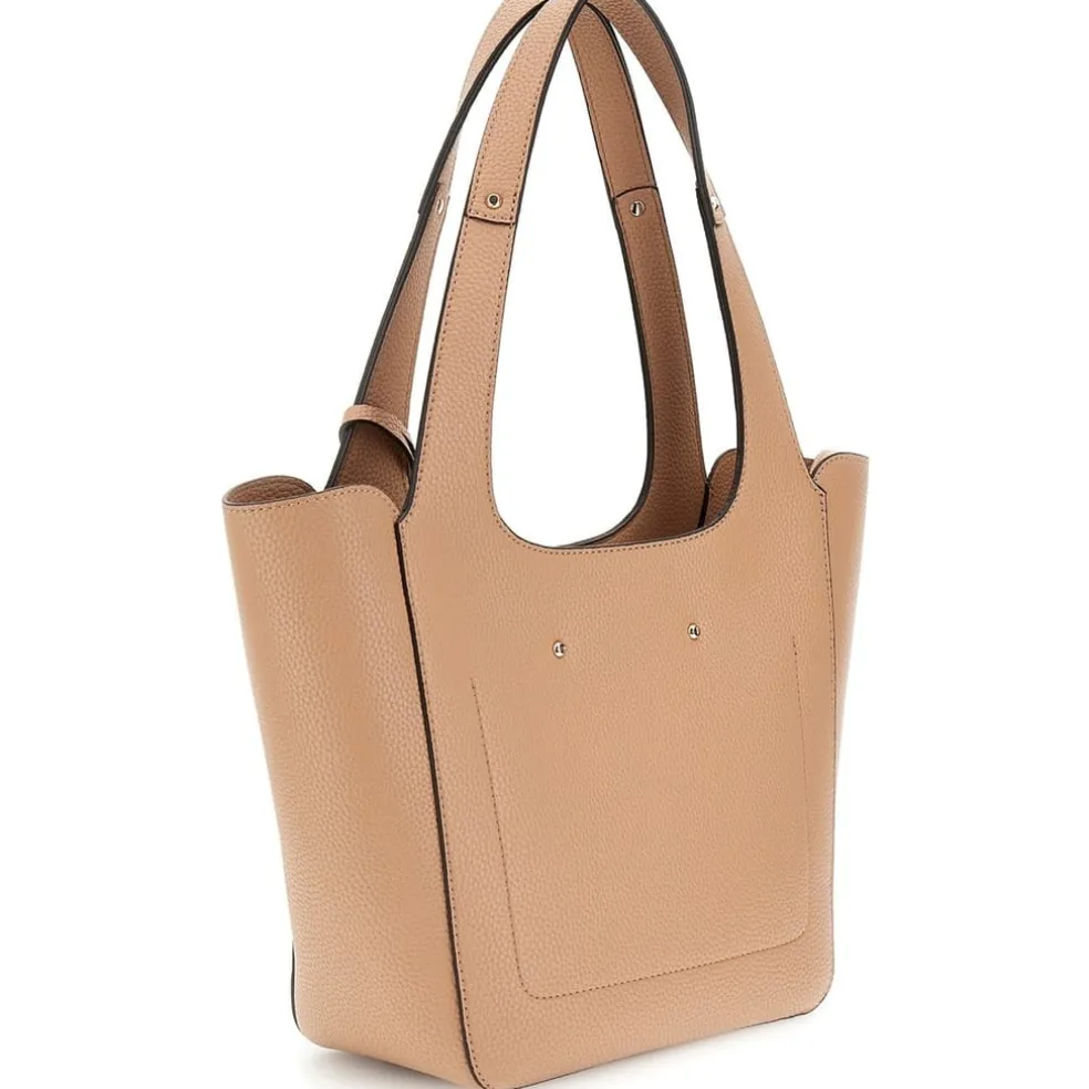 Discover the Guess tote bag, a stylish accessory perfect for any occasion. This elegant piece features a shoulder handle for comfortable carrying and is adorned with a distinctive logo embellishment, adding a touch of sophistication to your ensemble.