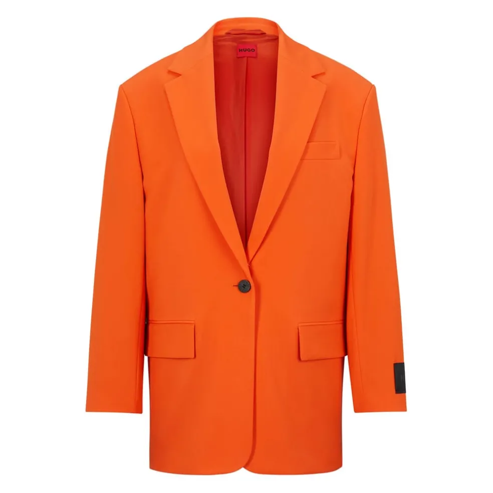 oversize fit / long length / one button / flap pockets / breast welt pocket