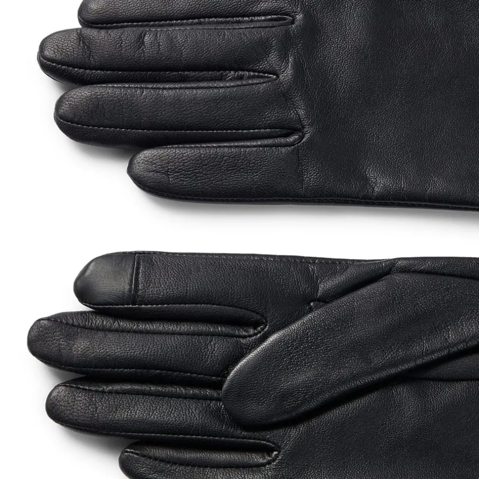 Leather gloves with HUGO stacked logo / touch tech fingertips / warm fleece as lining