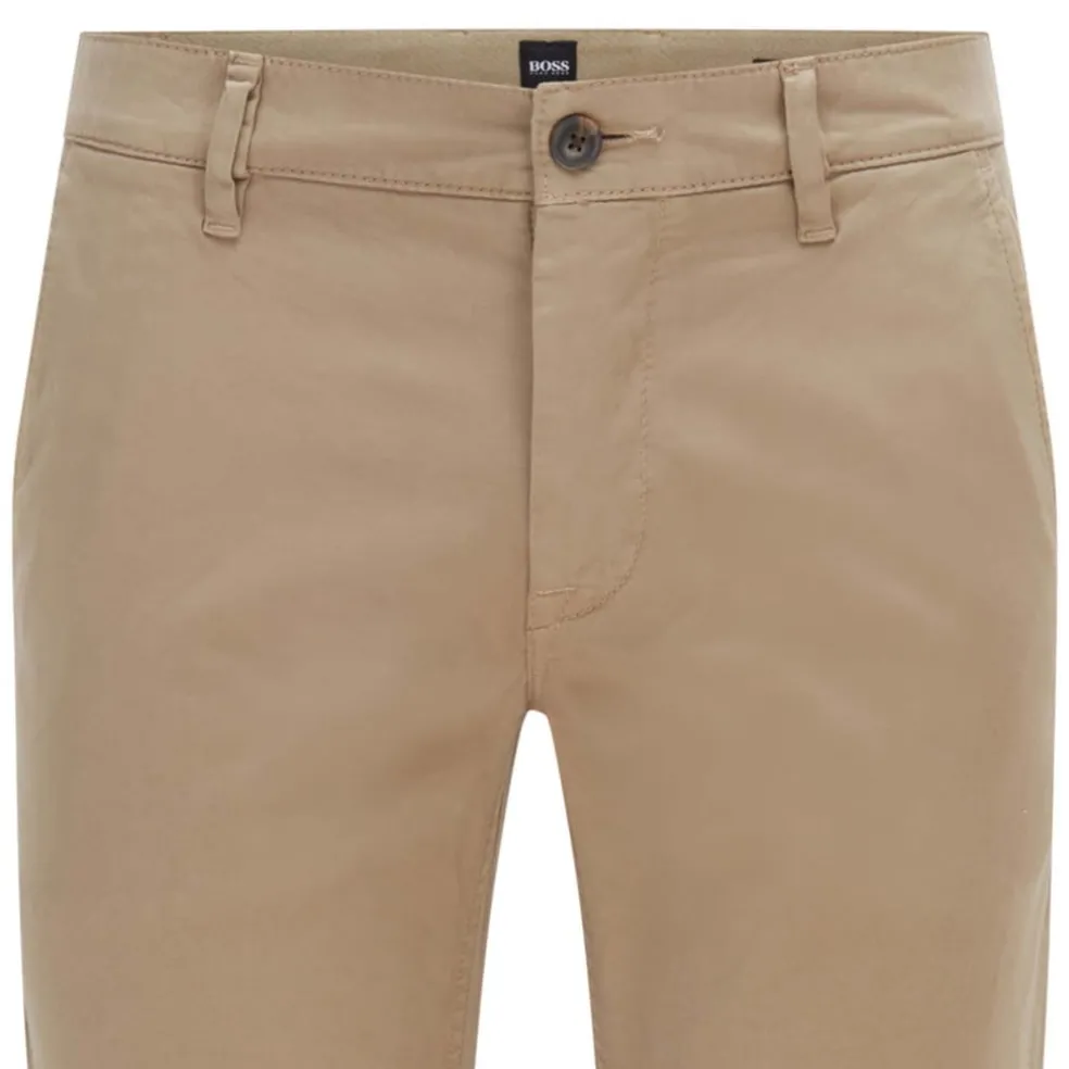 Slim-fit casual chinos in brushed stretch cotton This slim-leg pair is detailed with signature stitching and herringbone tape at the inner waistband. Comfortable, versatile casual shorts in easy-wear stretch cotton by BOSS.