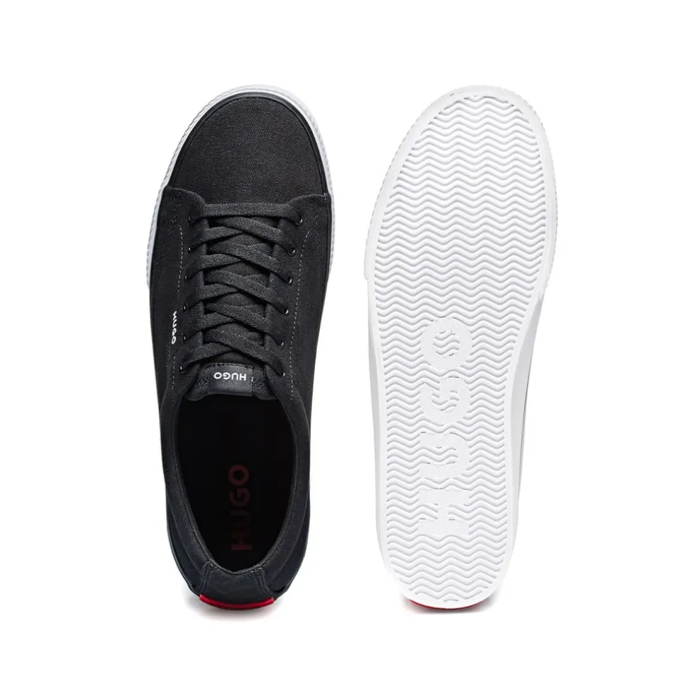 New HUGO sneaker. Lace up construction. Full canvas upper design with logo in contrasting colour on the side. HUGO red patch enriches the backtab. Full vulcanized sole.