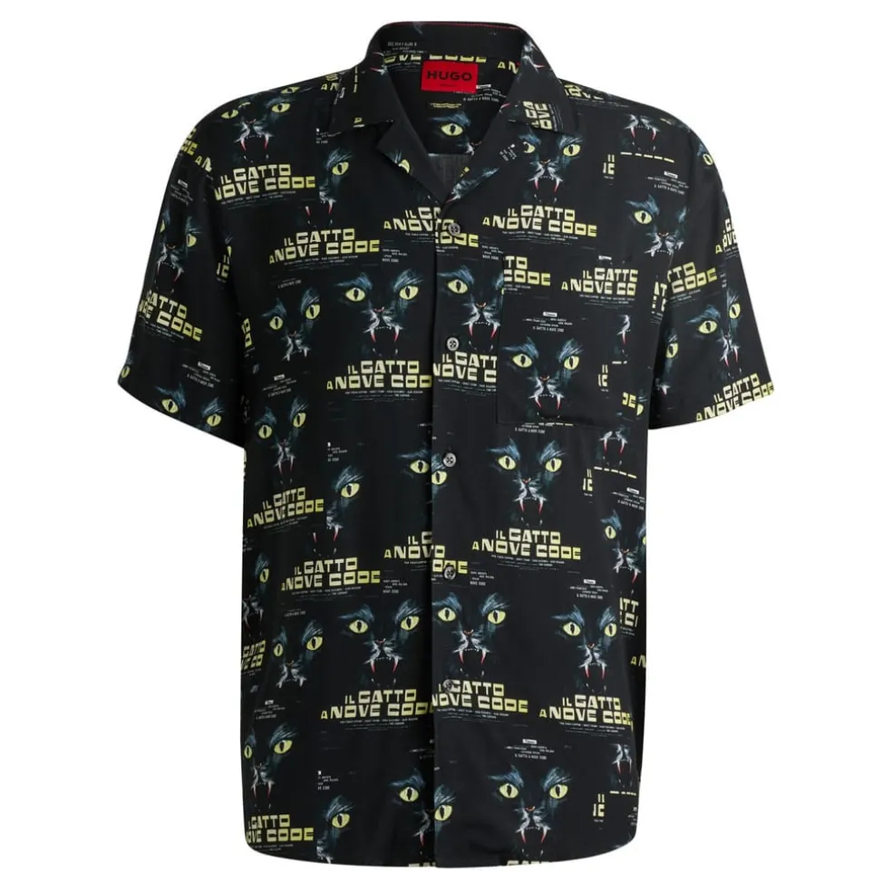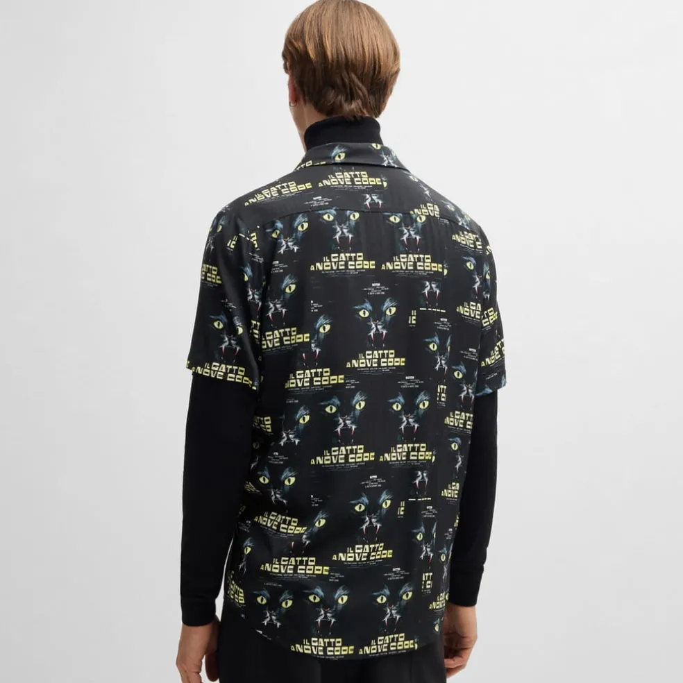 A unique shirt by HUGO. Offered in a laid-back fit, this short-sleeved piece is printed all over with 70s film graphics.