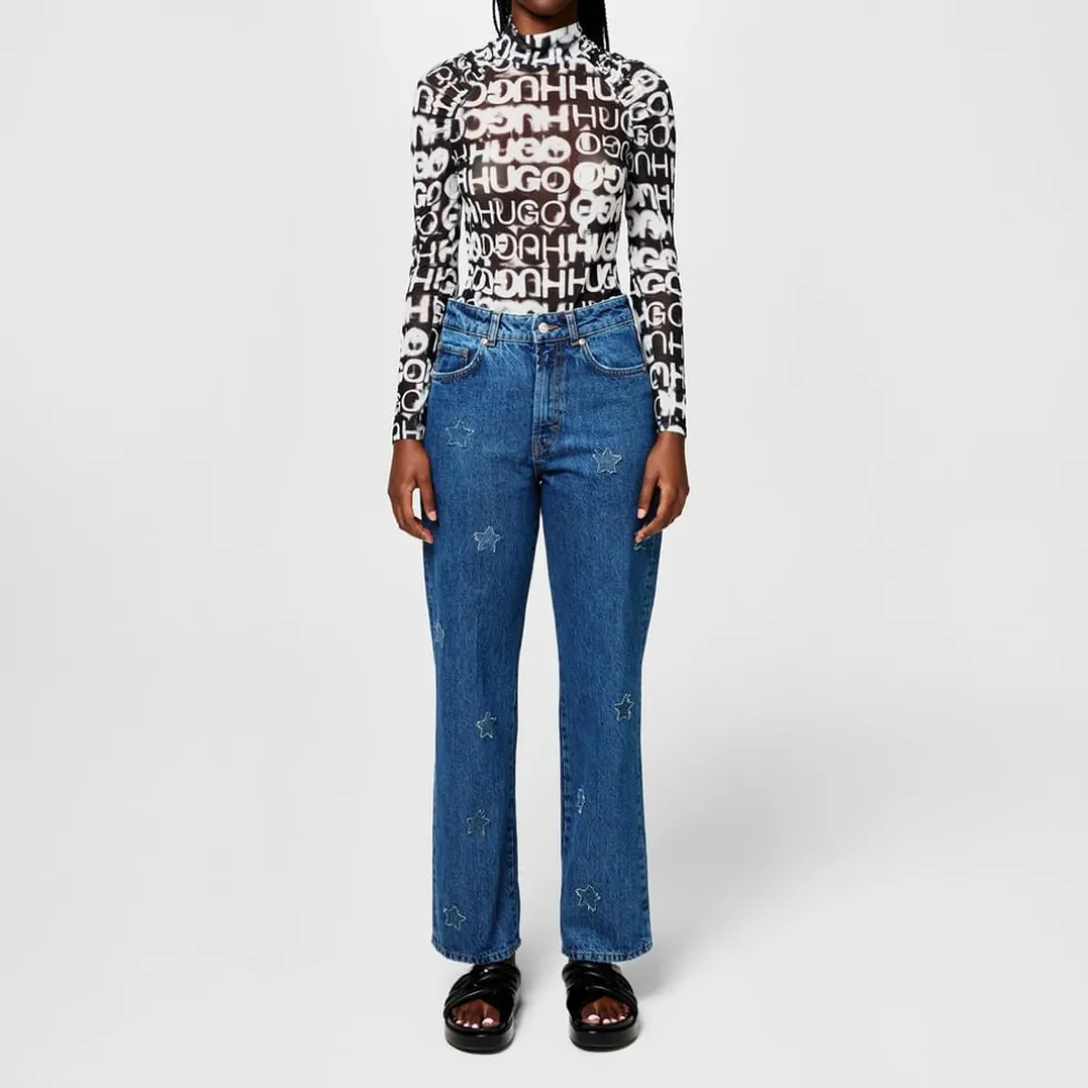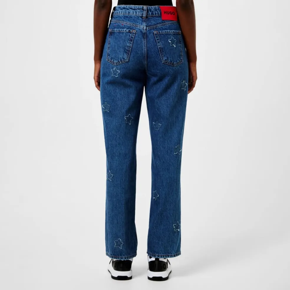– The solid block colouring creates a refined and versatile look that can transition from day to night effortlessly. Adding a touch of individuality, the Gilissi Relaxed Fit Jeans are adorned with tonal star-shaped patches, injecting subtle yet captivating details. A contrasting HUGO logo patch adorns the rear of the jeans, completing the d