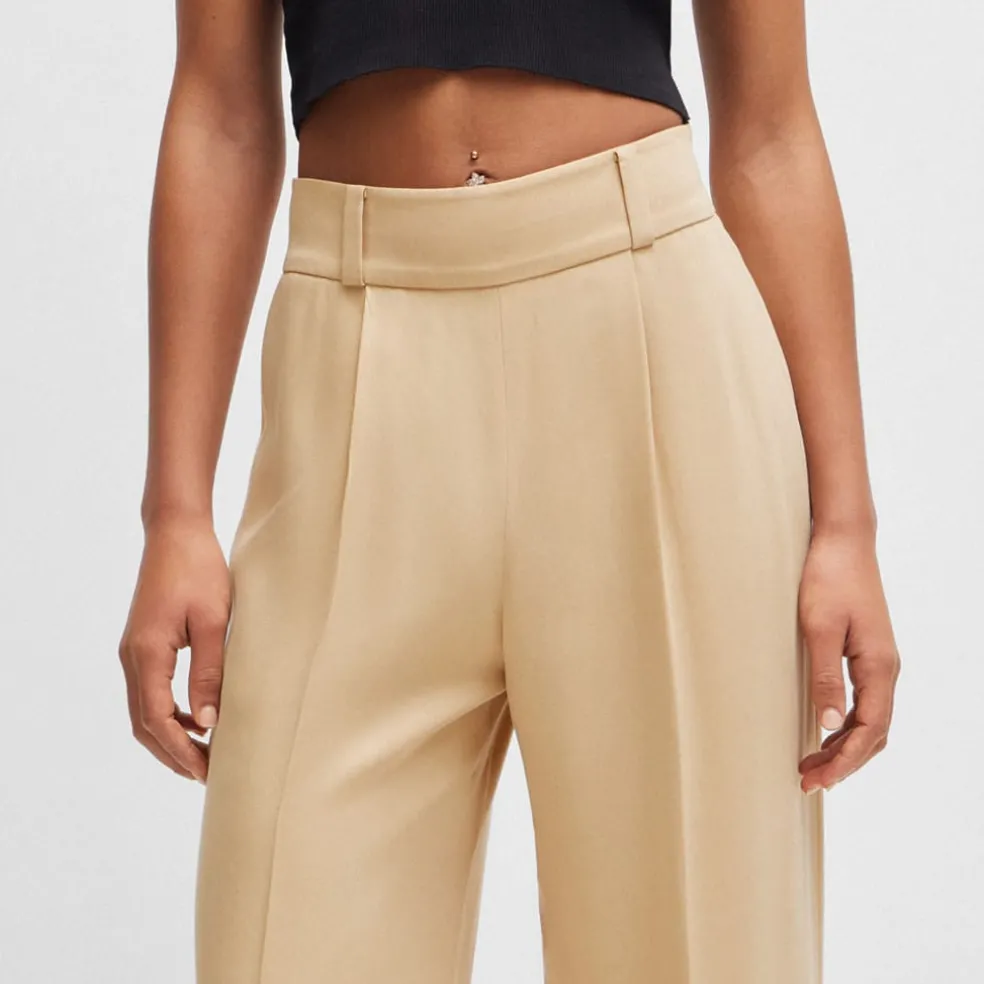 High-waisted trousers by HUGO Womenswear, cut to a relaxed fit with a wide leg in soft twill with a fluent drape.