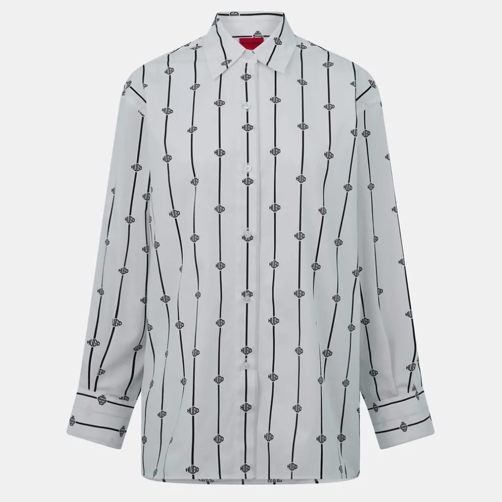This Hugo top features a classic stripe pattern and a point collar, offering a timeless look. The long sleeves and button-down closure provide a regular fit, ensuring comfort and style. A subtle logo embellishment adds a touch of brand identity to this elegant piece.