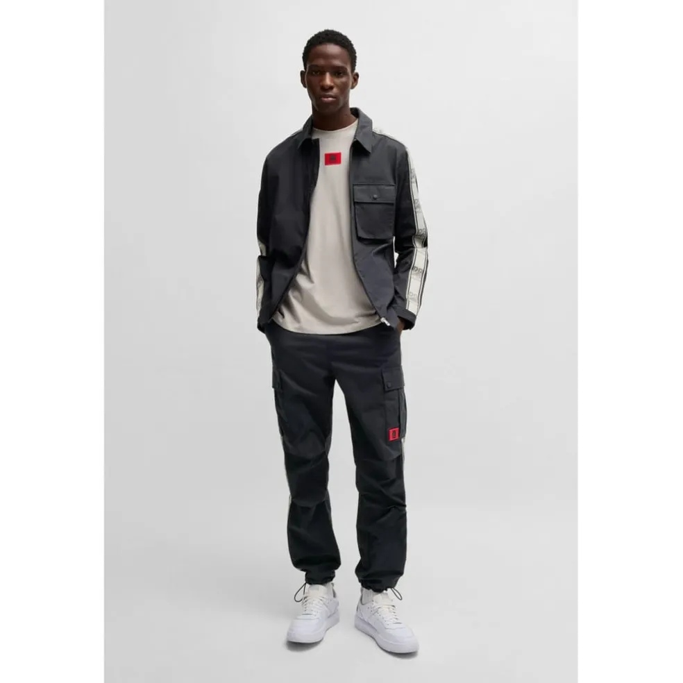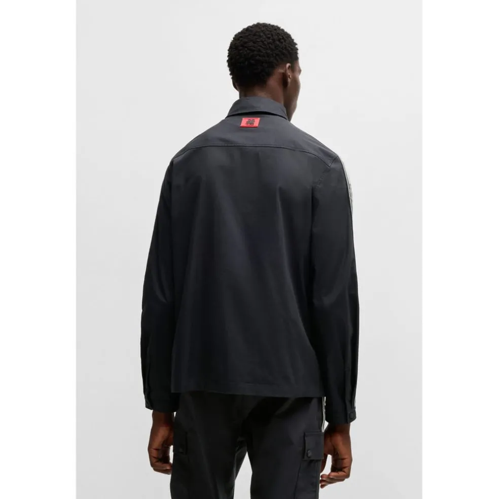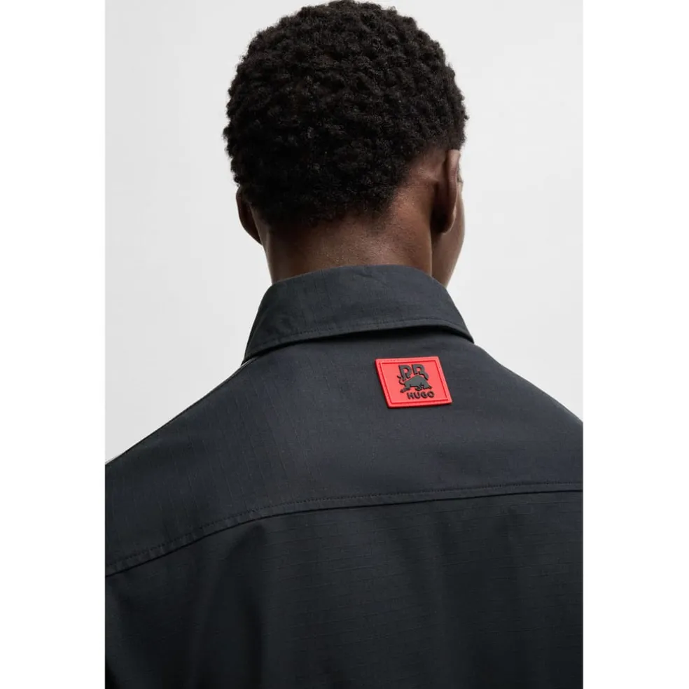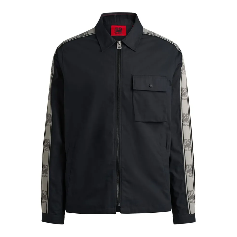 HUGO Menswear zip-up overshirt in sporty cotton. Designed for a relaxed fit, it features a logo patch and branded bands on the sleeves. Part of HUGO’s collaboration with the RB Formula One™ team, this piece is designed to evoke a passion for the thrill of motorsport.