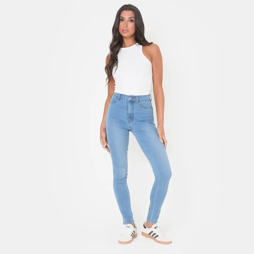 The High Waisted Skinny Jeans—designed to move with you from day to night. Crafted with a soft, breathable denim fabric, these jeans hug your curves in all the right places while offering superior comfort and shape retention. The high-rise waist flatters your figure and pairs perfectly with everything from crop tops to oversized sweaters.