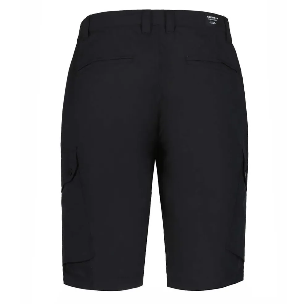 Icepeak shorts for men. Regular fit. Two back pockets. Two front pockets. Cargo pockets. Zip fly with button. Elastic waistband. Belt loops. Logo label. The fabric allows moisture to evaporate quickly, keeping you dry and comfortable at all times.