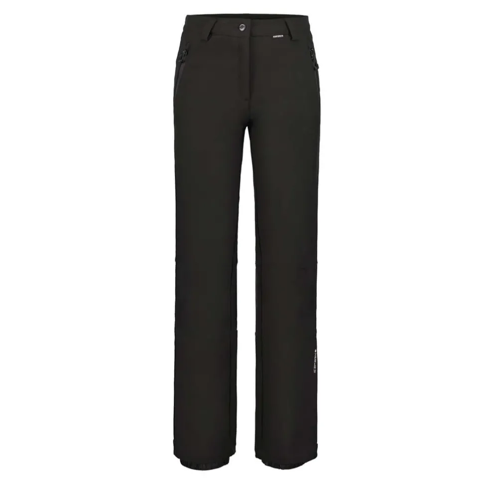 Icepeak Softshell Trousers For Women. Slim Fit. Articulated Knees. Zips At Leg Bottoms. Fixed Snow Gaiters In The Leg Openings. Water Column 10 000 Mm. Breathability 8 000 GM224H. This A.W.S. Extreme Product Meets The Needs Of Active Outdoor People Even In Extreme Conditions. Structural Details And Protective Materials Make The Product Functional In Every Situation, No Matter The Weather. The Product Is Made Water-Repellent Without Pfcs. Softshell Is A Functional Material For A Wide Range Of Outdoor Activities. The Product Provides Weather Protection While Being Comfortably Flexible At The Same Time. The 2-Way Stretch Material Increases The Freedom Of Movement.