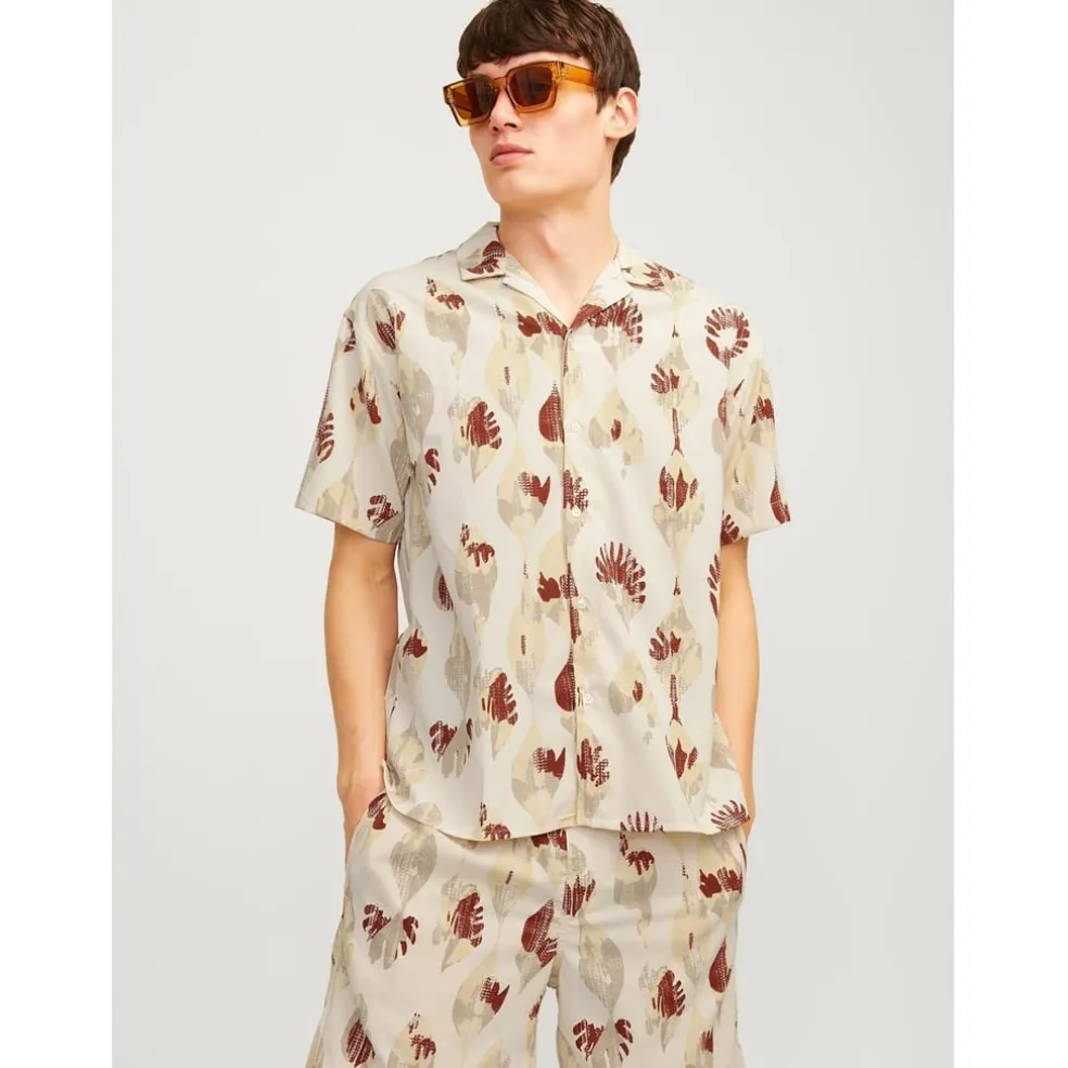 Jack and Jones Jaq Regular Fit Short Sleeve Shirt in Cream