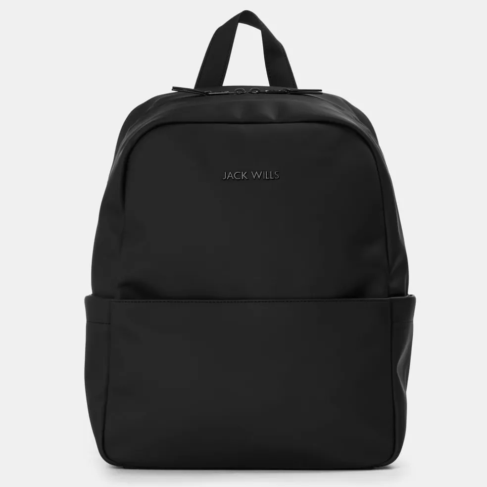 Jack Wills Black Coated Backpack with Logo in Black