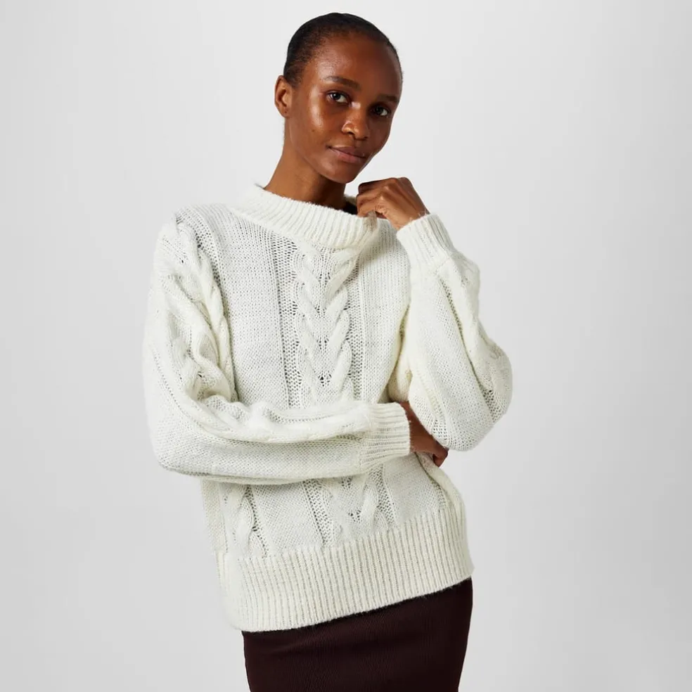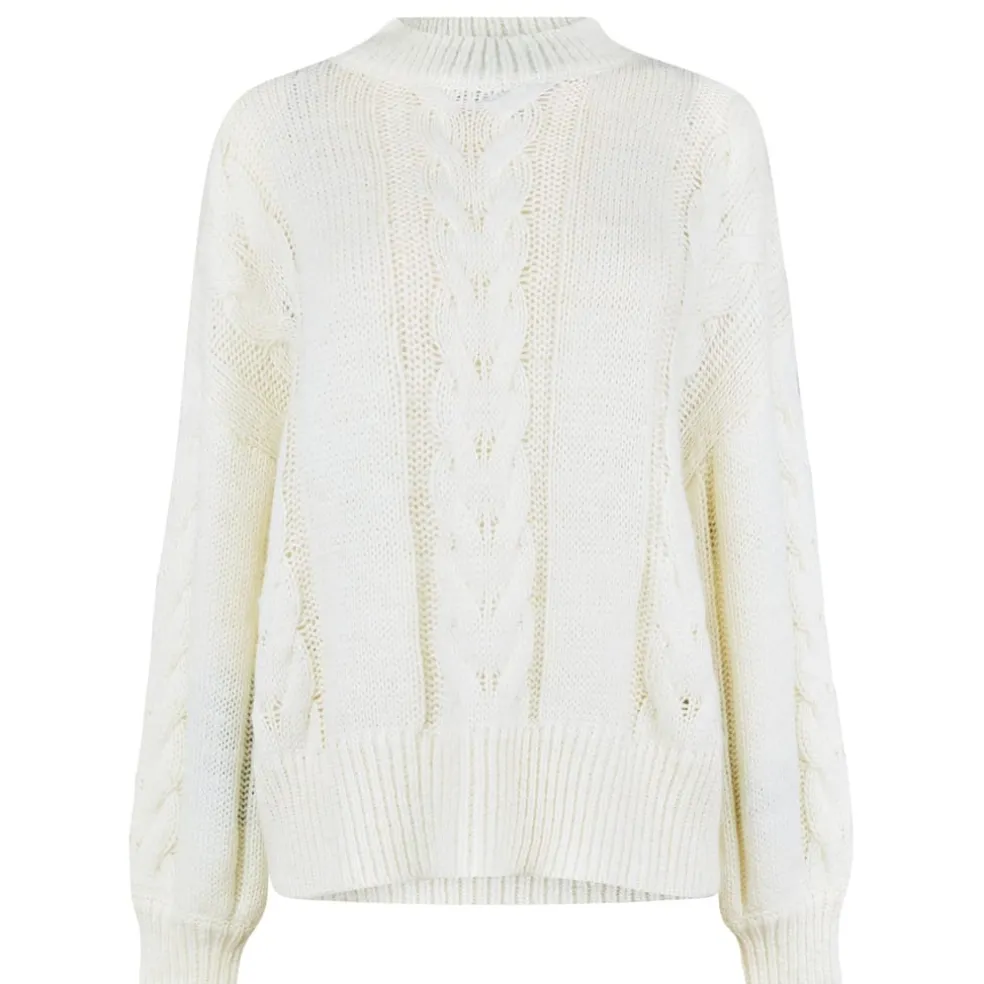 Jack Wills Cable Long Sleeve Relaxed Fit Sweater in White