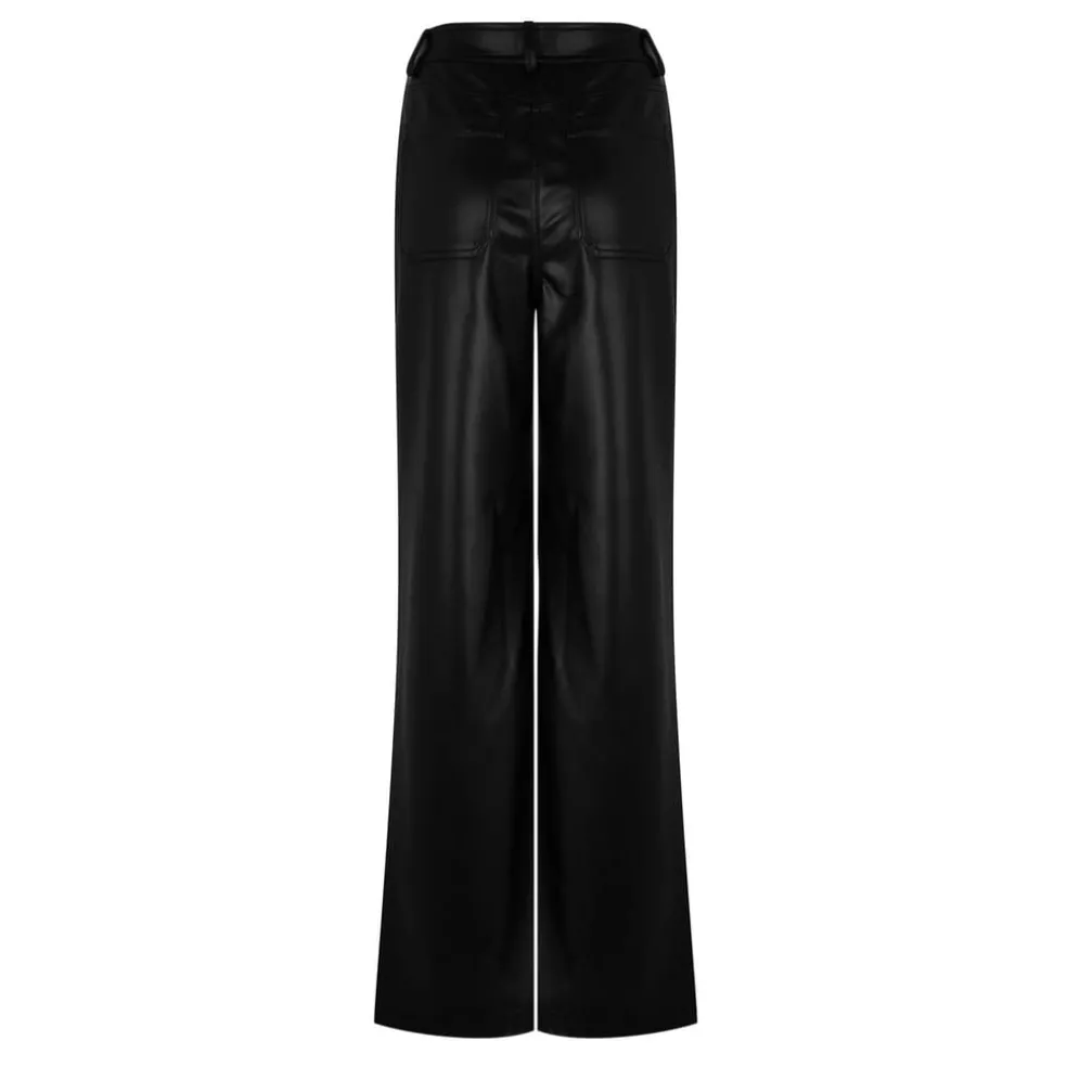 Jack Wills Faux Leather Straight Leg Trousers in Black