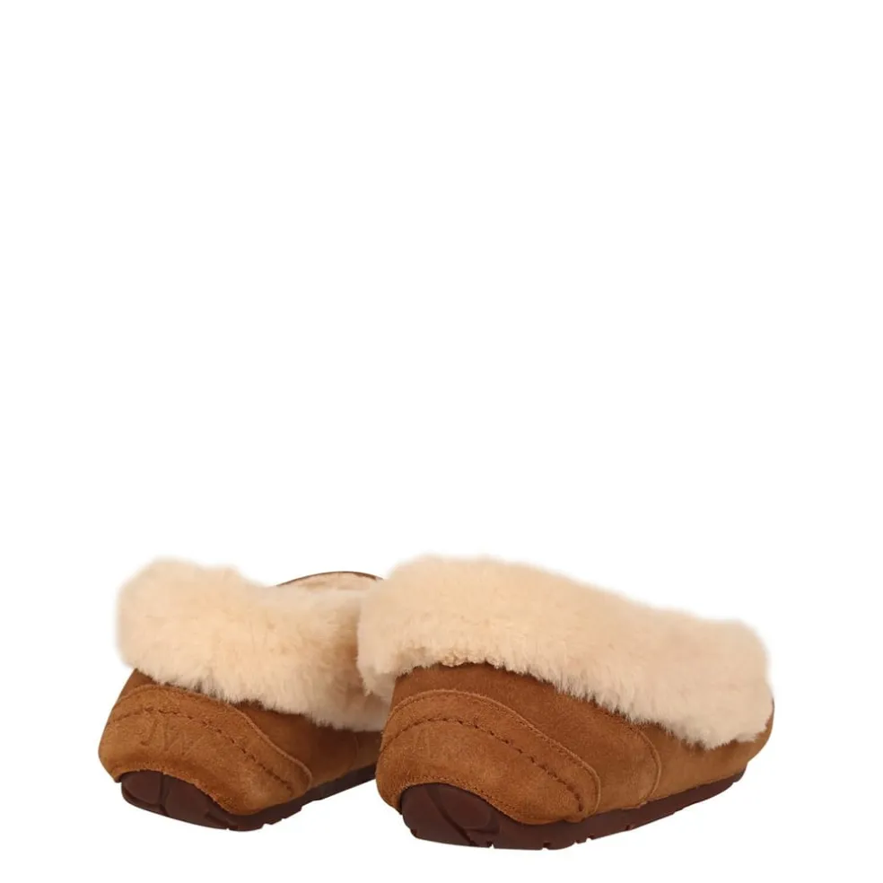 Elevate your slipper collection with the JW Moccasin Slipper. This premium slipper offers a loafer design with suede upper, soft interior lining and a grippy outsole making it a suitable choice when switching between inside and outside while at home. JW logo branding on the rear to finish the appearance. Leather upper with textile lining and TPR sole.