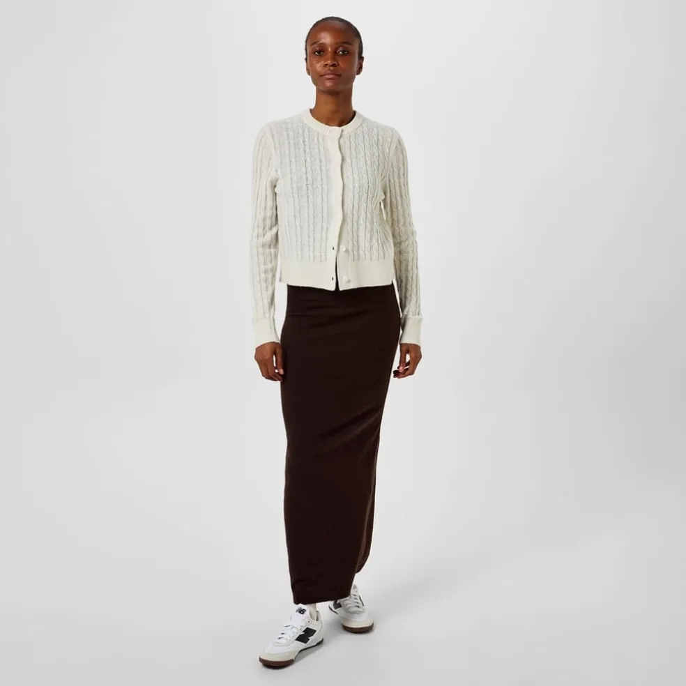 This Jack Wills cardigan sweater in a cable knit pattern embodies timeless style. With a regular fit and long sleeves, it offers comfort and versatility for various occasions. The crew neck and ribbed collar add a classic touch, while the ribbed cuffs ensure a snug fit. Finished with a button closure, this top is a staple piece for your collection.