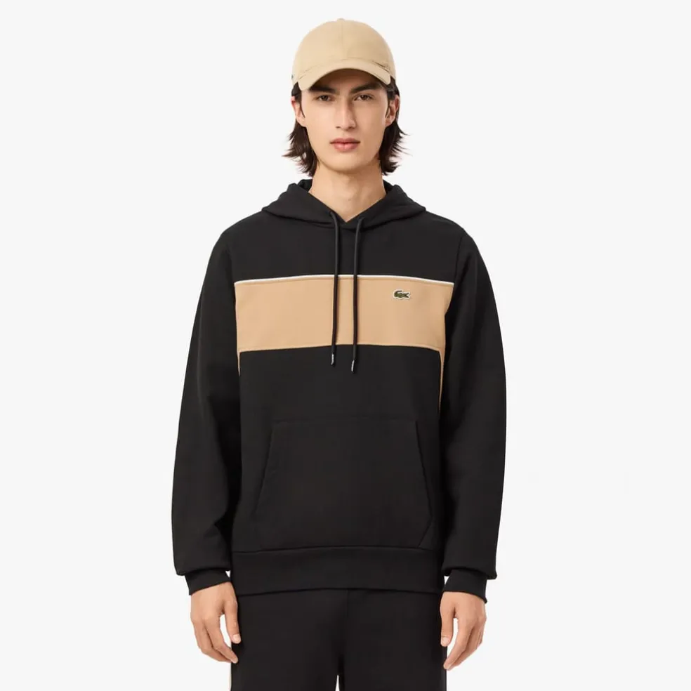 Lacoste Colour-Block Fleece Hoodie in Black