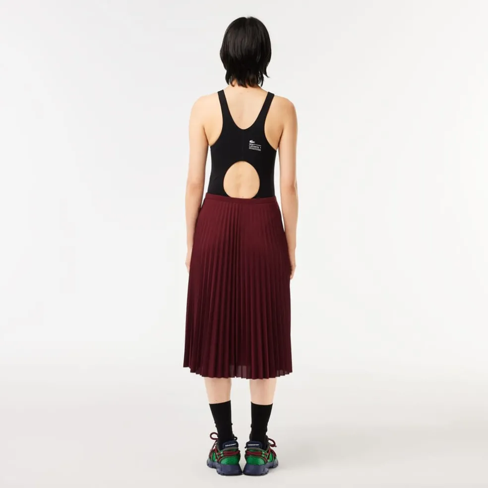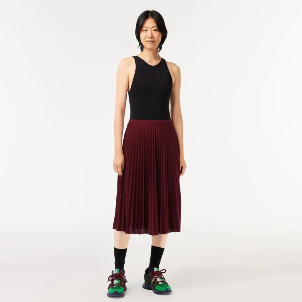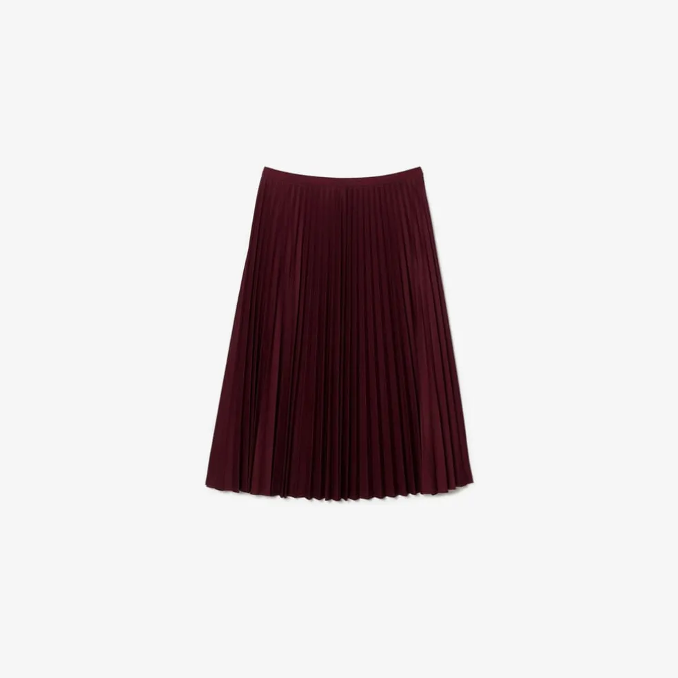 Lacoste Elastic Waist Fluid Pleated Skirt in Burgundy