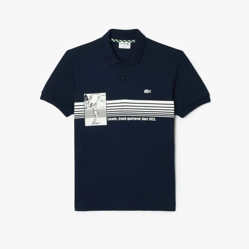 Mens Lacoste French Made Original L.12.12 Print Polo Shirt Organic cotton Classic fit, comfortable sleeves Tonal gum buttons Checked neck band Embroidered crocodile on chest