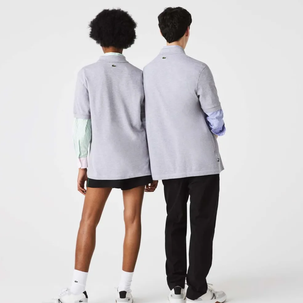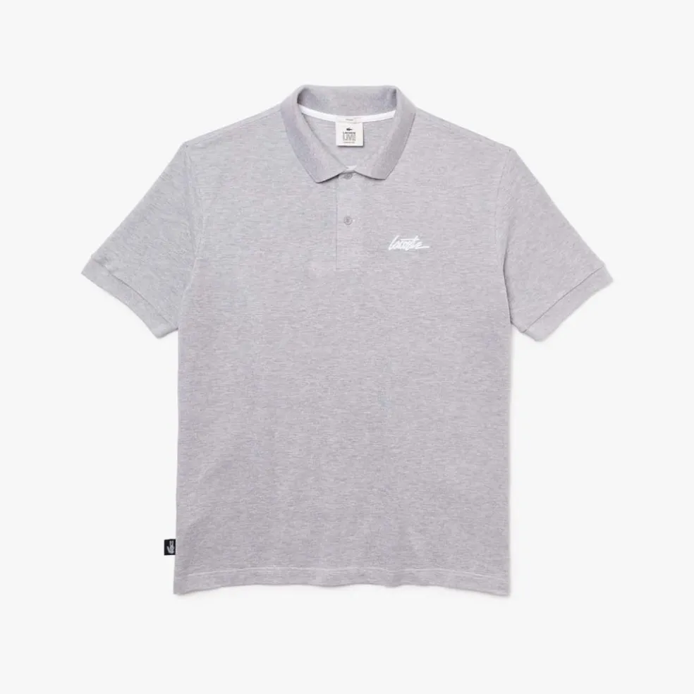 Unisex Lacoste L!VE Loose Fit Signature Cotton Polo Shirt Cotton petit piqué Ribbed two-button polo collar and ribbed sleeve ends Loose fit Signature Lacoste embroidered on chest Embroidered green crocodile on back