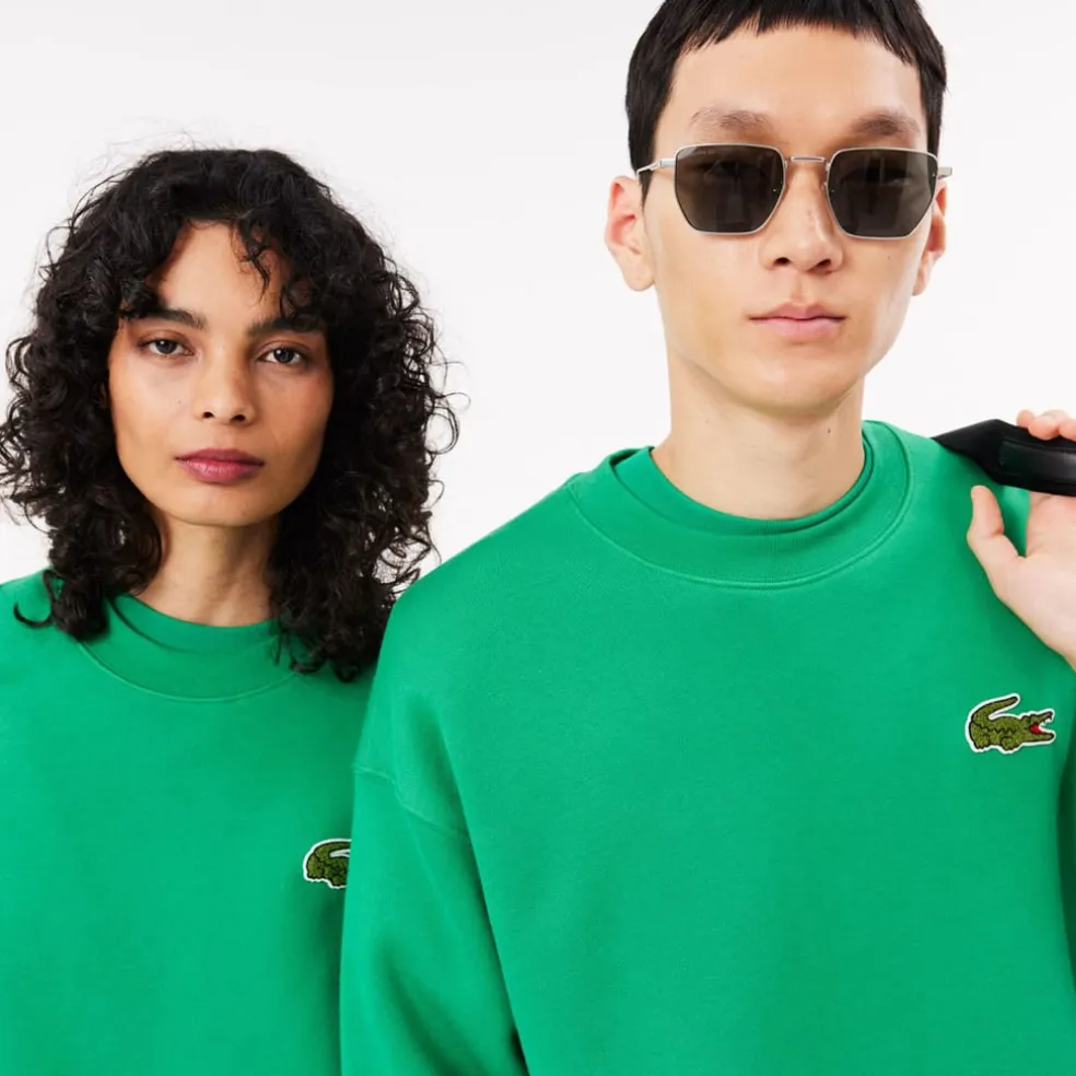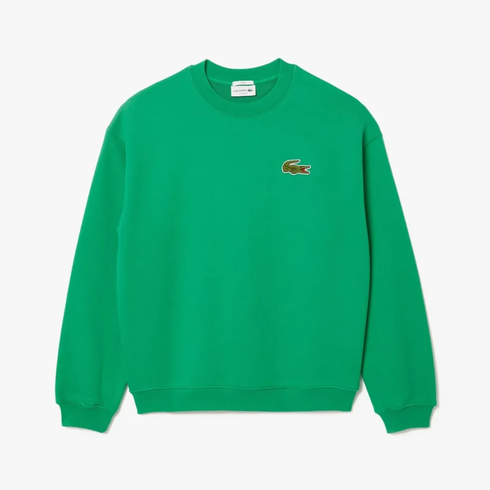 Lacoste Loose Fit Badge Accent Fleece Sweatshirt in Green