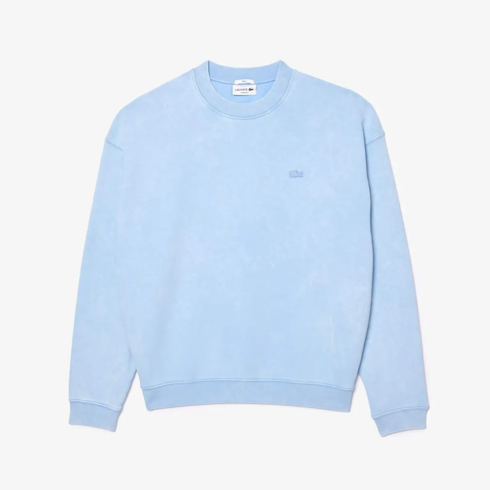 Lacoste Loose Fit Washed Effect Fleece Sweatshirt in Light Blue