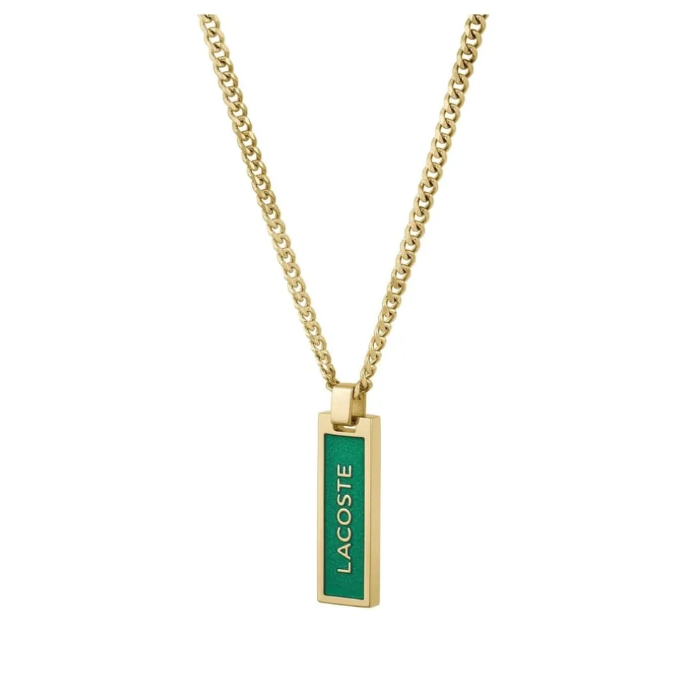 Lacoste Men’s Fence Yellow Gold IP with Green Colored Enamel Necklace.