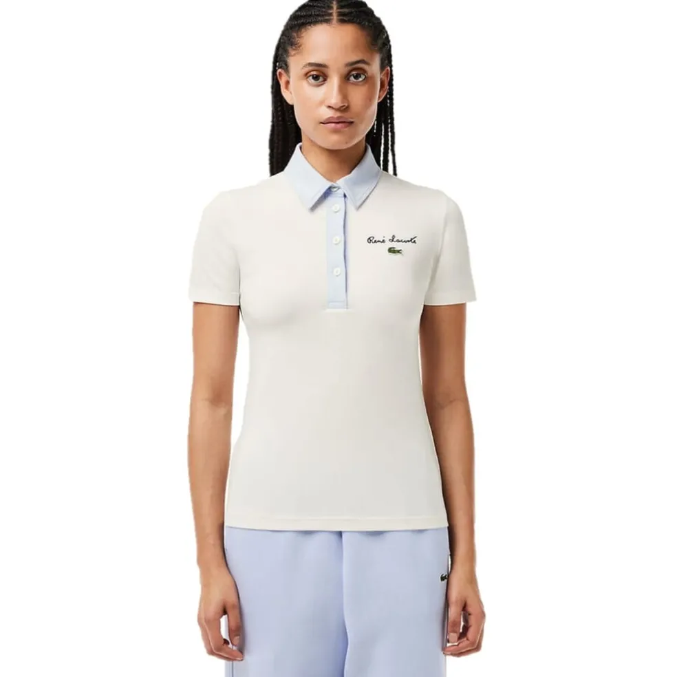 This Lacoste top from the semi-formal collection features a solid pattern with a polo collar and short sleeves. It offers a slim fit and is adorned with an embroidered logo. The button closure adds a classic touch, making it a versatile choice for various occasions.