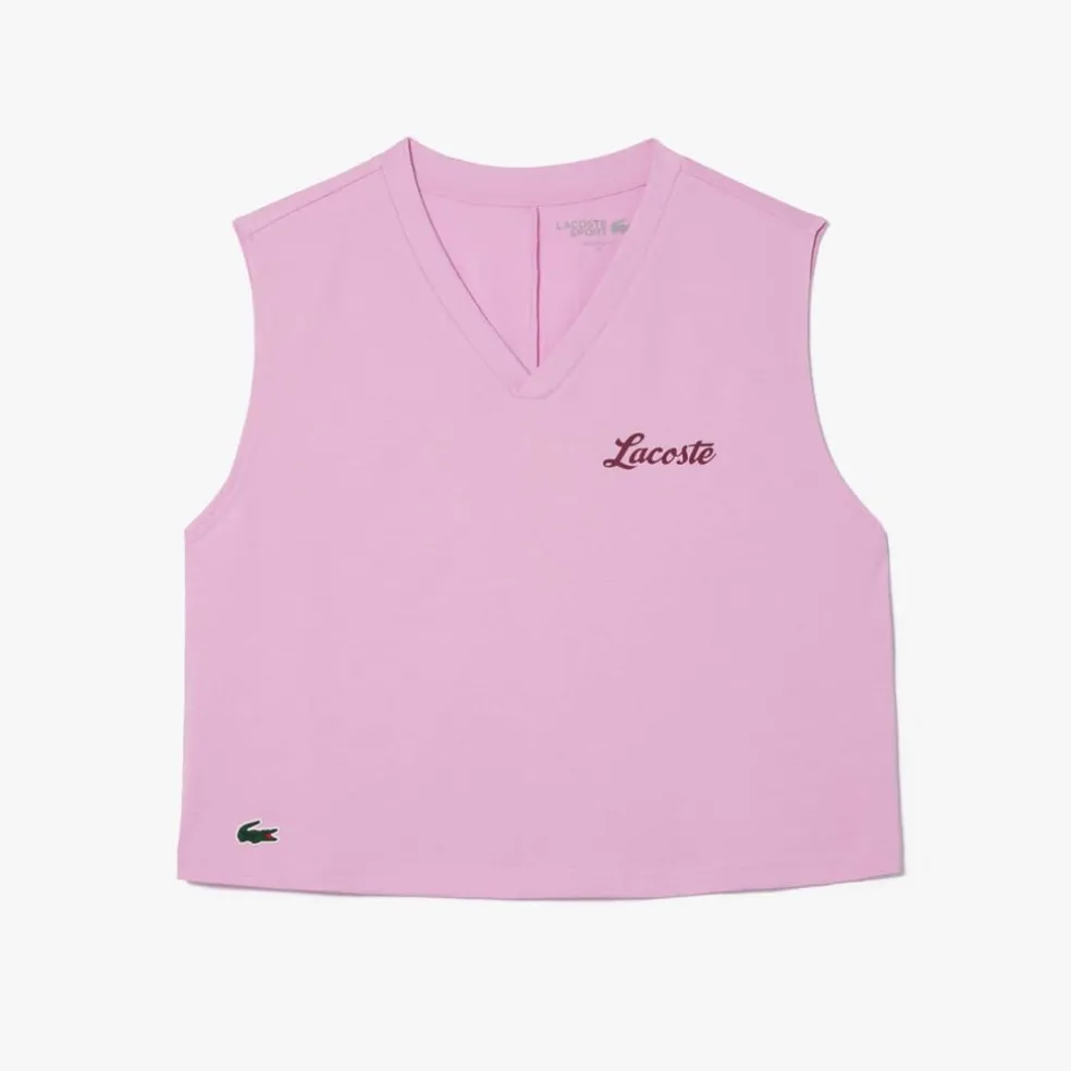 Freedom. Ease. Breathability. A sleeveless Lacoste crop top with Ultra Dry technology: comfort for even the most intense sessions.