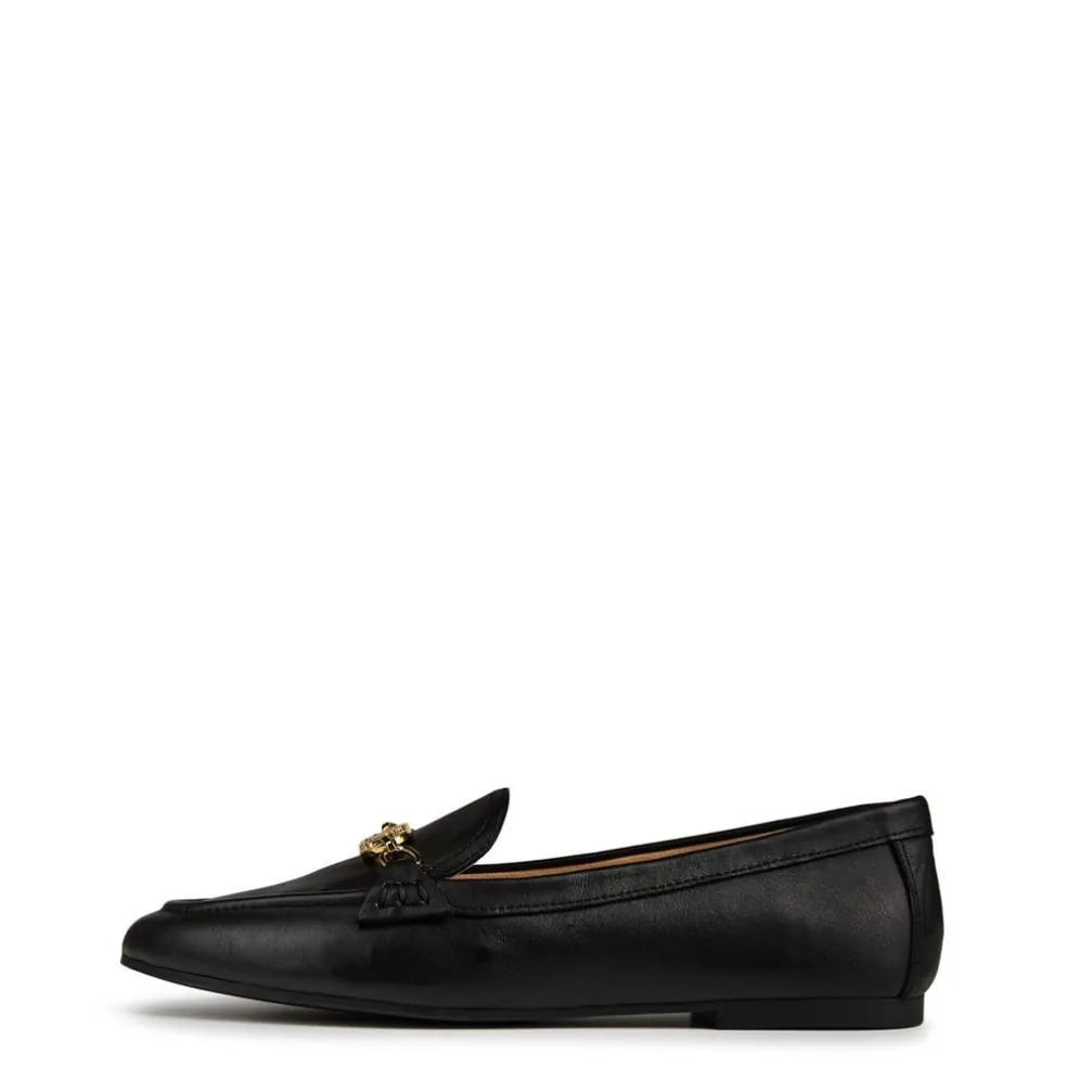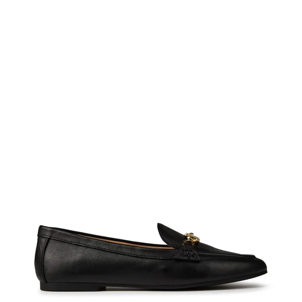The Averi loafer is crafted from soft, full-grain nappa leather embellished with an LRL oval chain at the vamp for a luxurious Lauren Ralph Lauren finish. Featuring a padded sole and rounded toe.